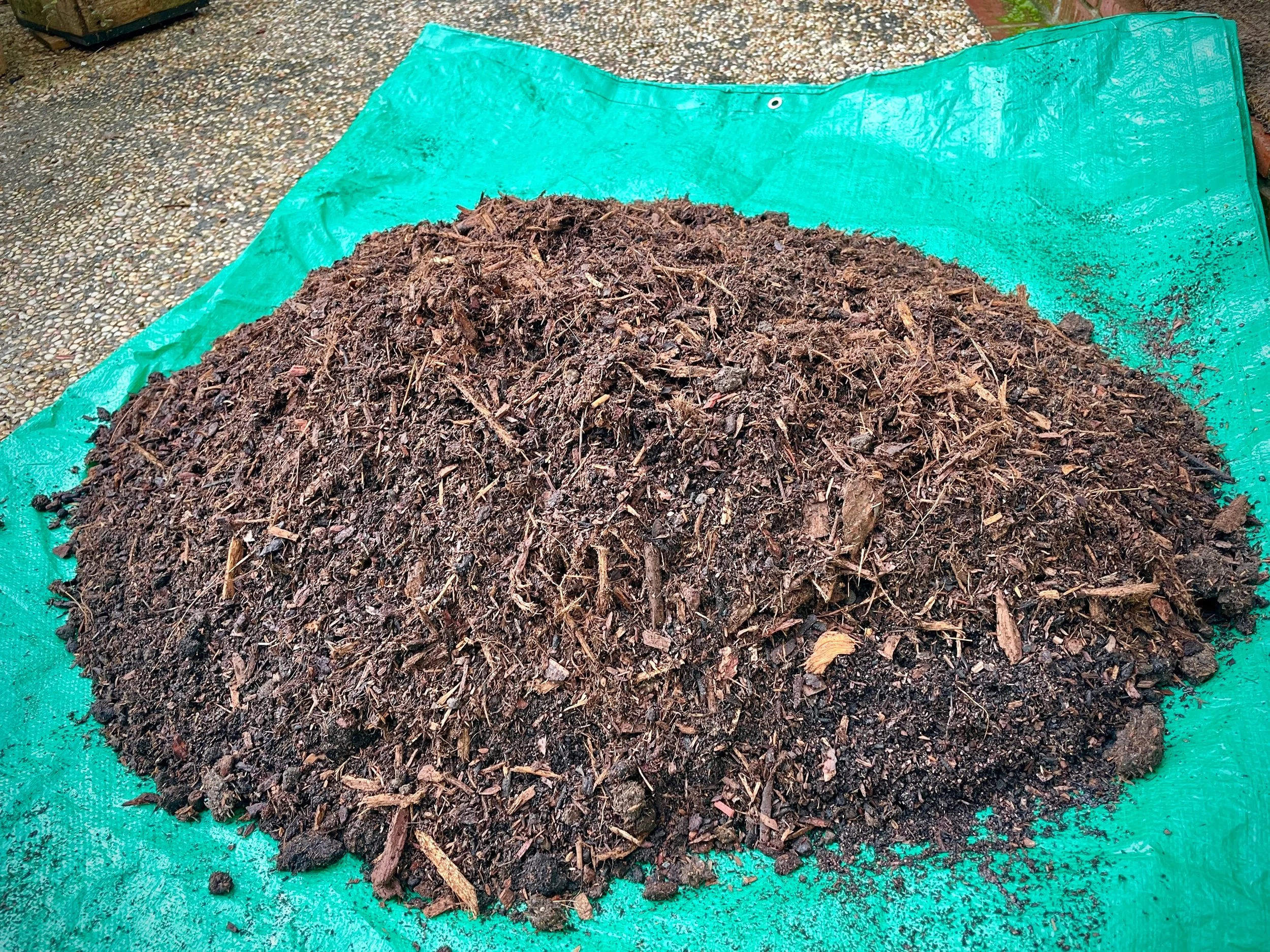 As a growing experiment to compare soil, to grow trunks & roots faster for younger seedlings. Planting similar starter trees in an organic mix. Roughly 40% wood mulch, and 40% peat/perlite and 20% manure. Two handfuls of black basalt fines to stimulate root growth, but not too much. These will fill 1 gallon grow-bags and 3 gallon nursery pots, with stones on the bottom for drainage, and felt had blue the roots to allow flatter root development before the roots that reach the end of the pot, run down to the bottom and fill and grow.