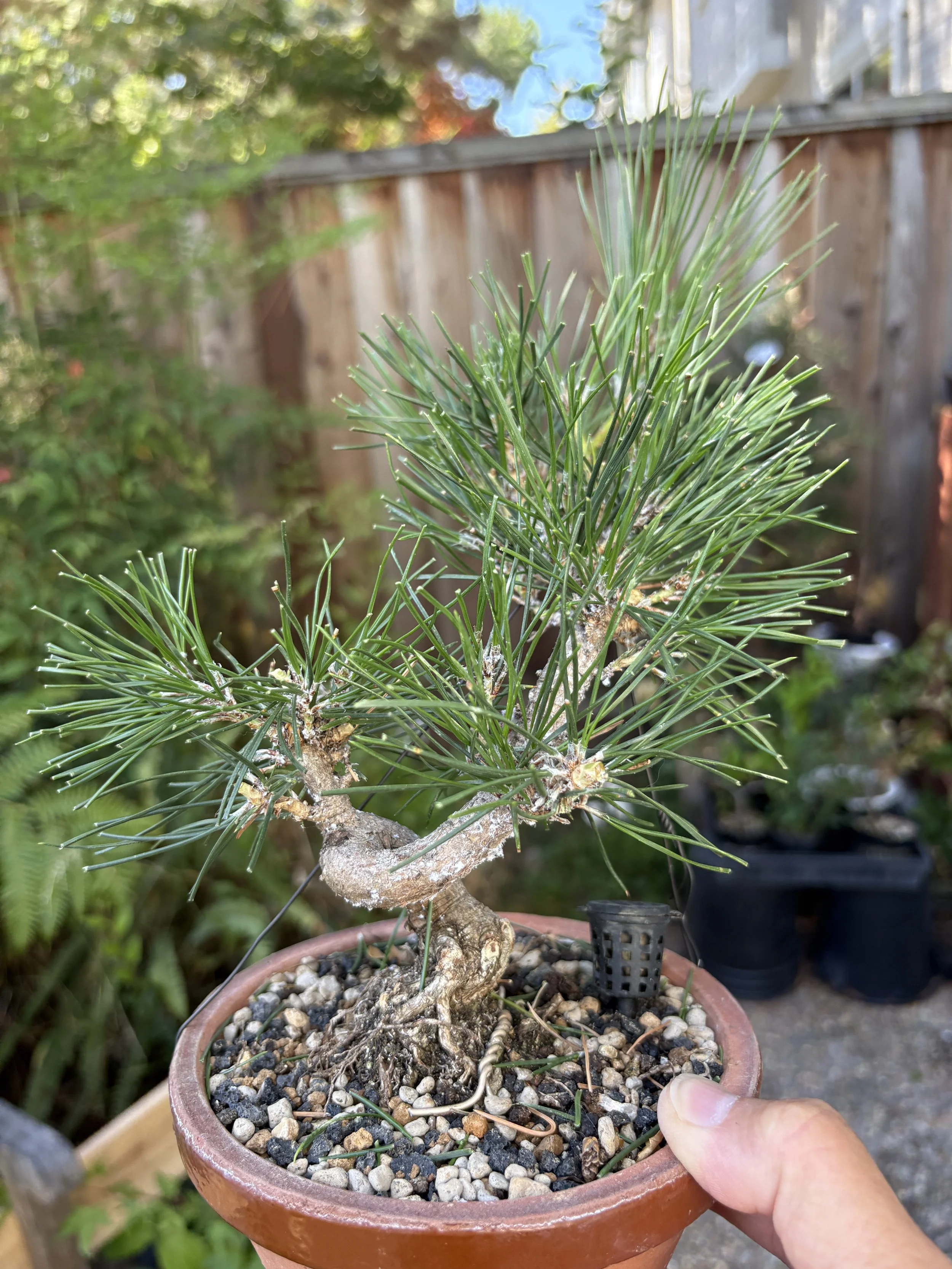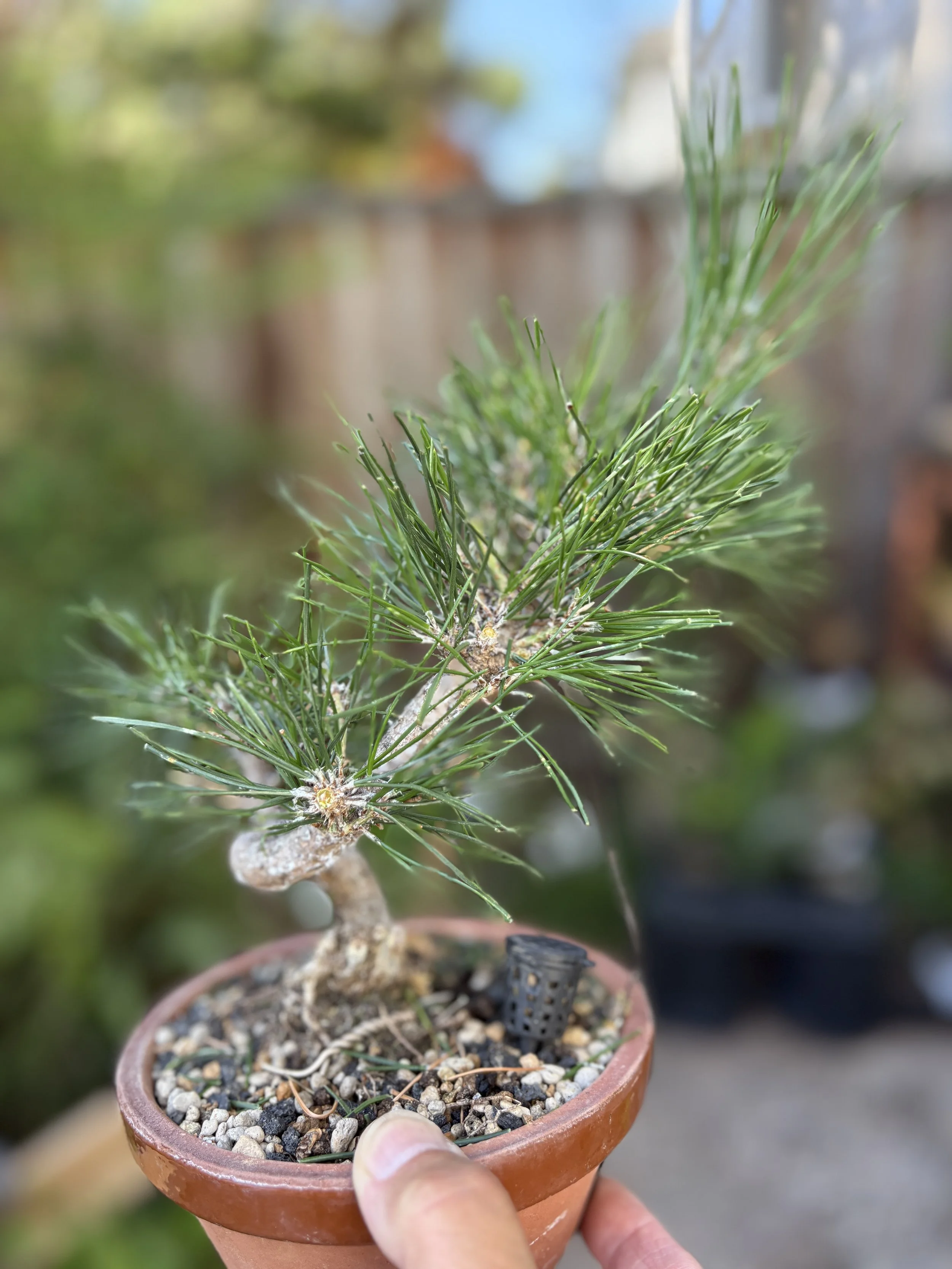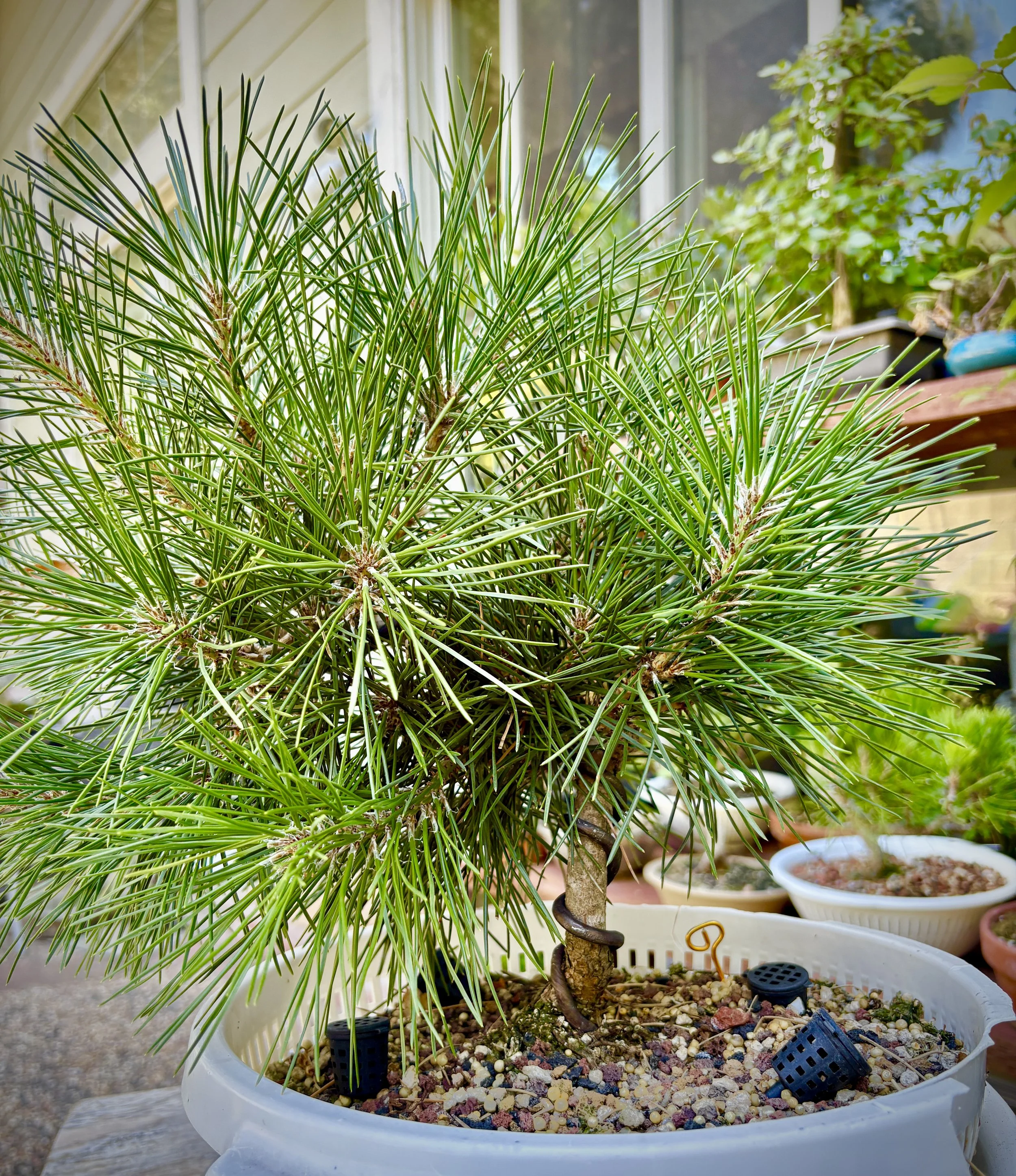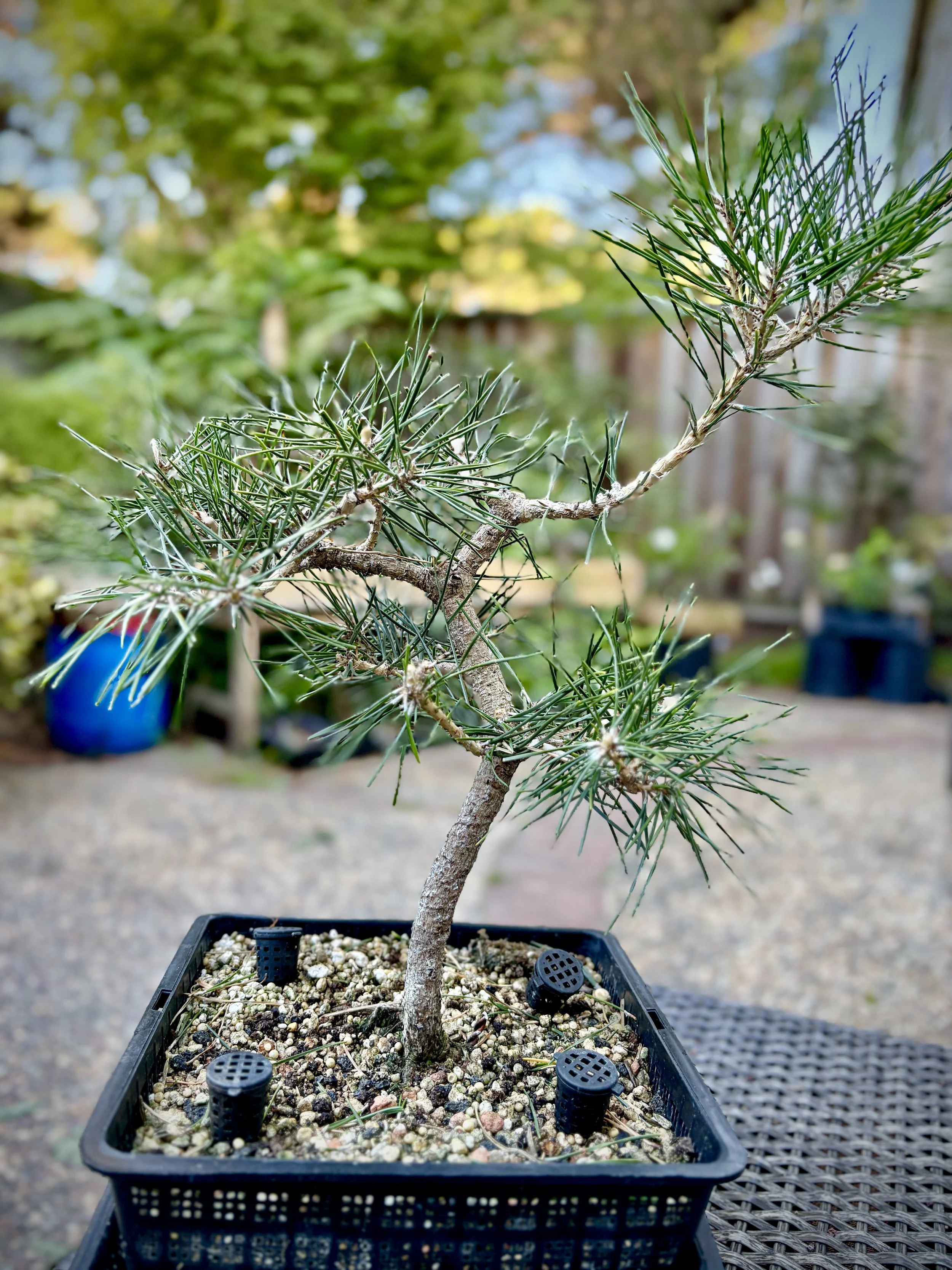 Thinned out remaining needles, leaving some from last year, a total of 8 or so pairs on each branch. This is to stimulate back budding.