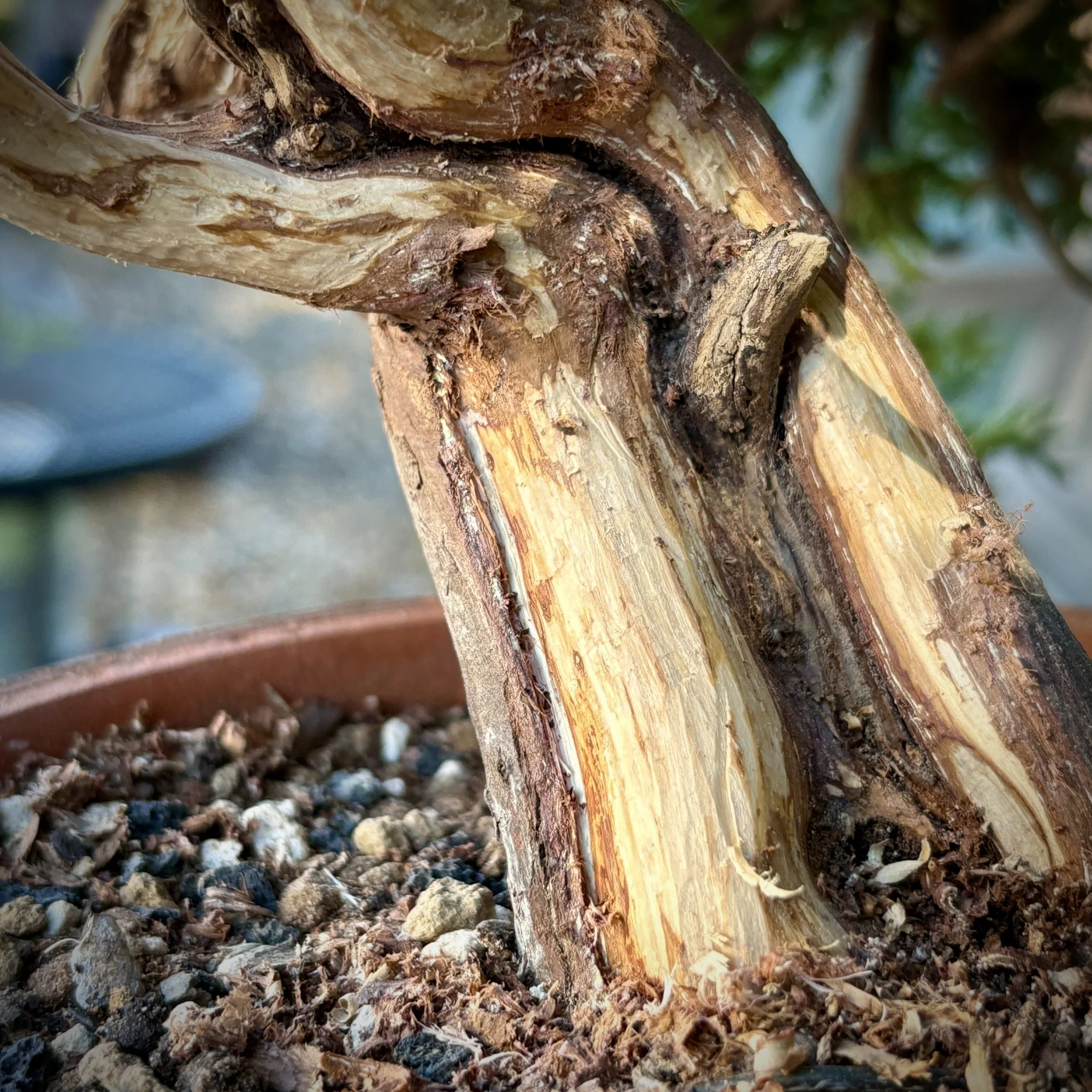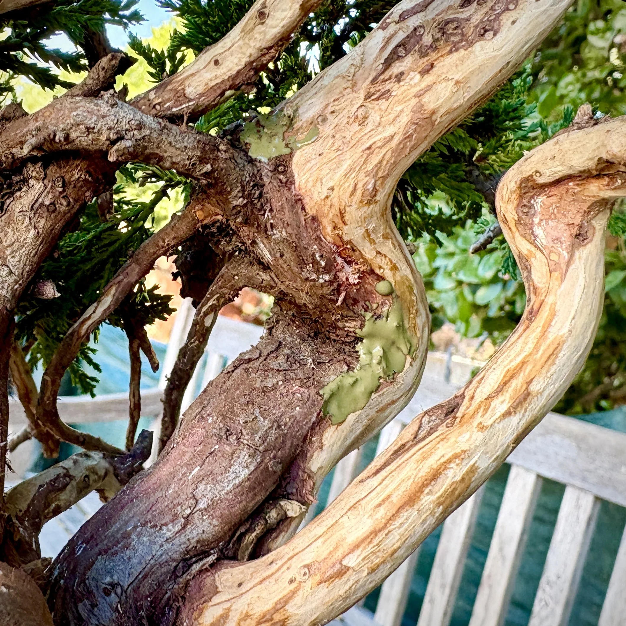 Homework: Study the tree for what will be the front and what is most attractive, come up with a design, and we will move the foliage next time. The front should include live vein and deadwood, so the current front having all deadwood may need to adjust to show some lol I’ve vein.