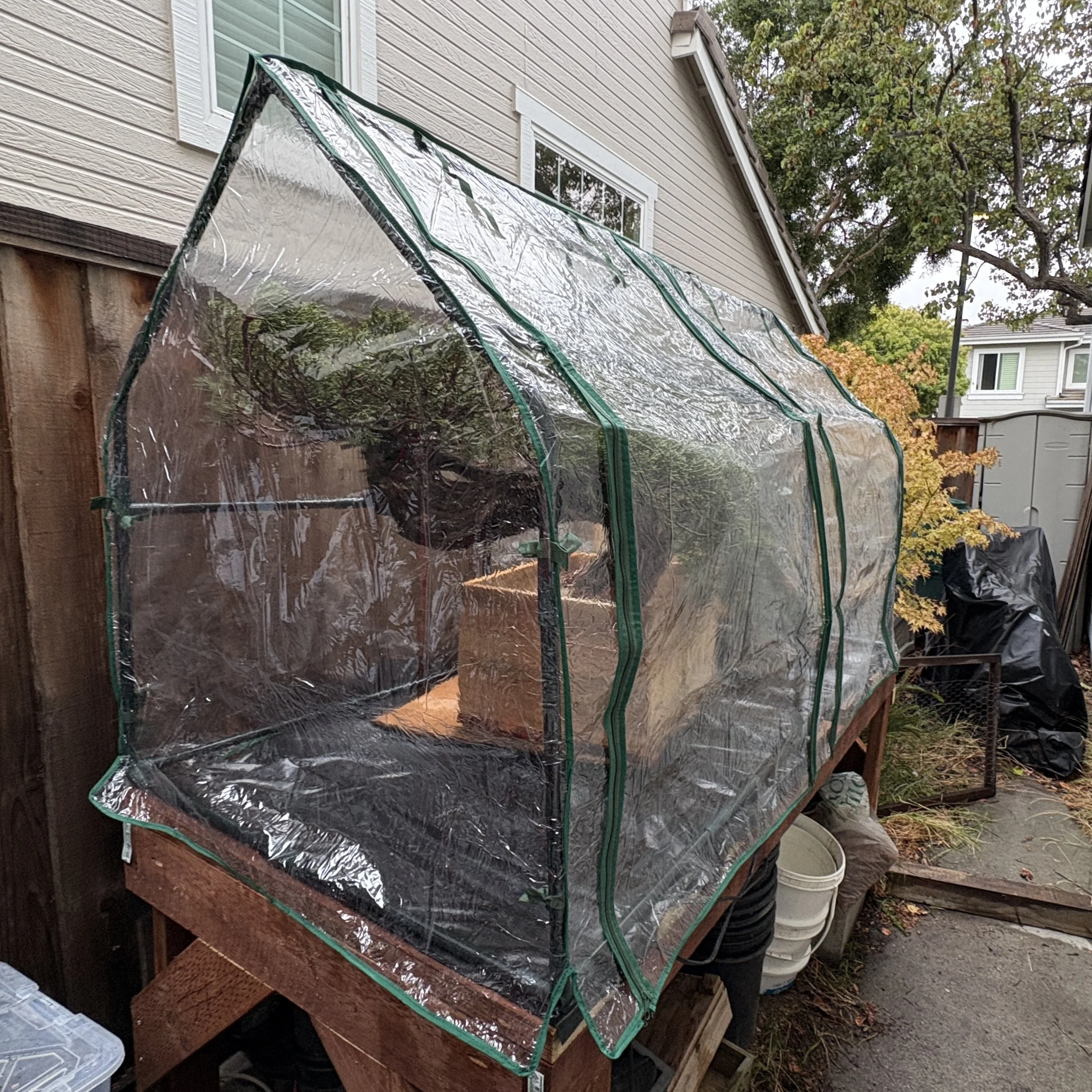 “Concerned with mold/mildew/rot, so I think I will plan to further reduce the [hourly misting] watering and maybe open up a bit of ventilation along the sides.”