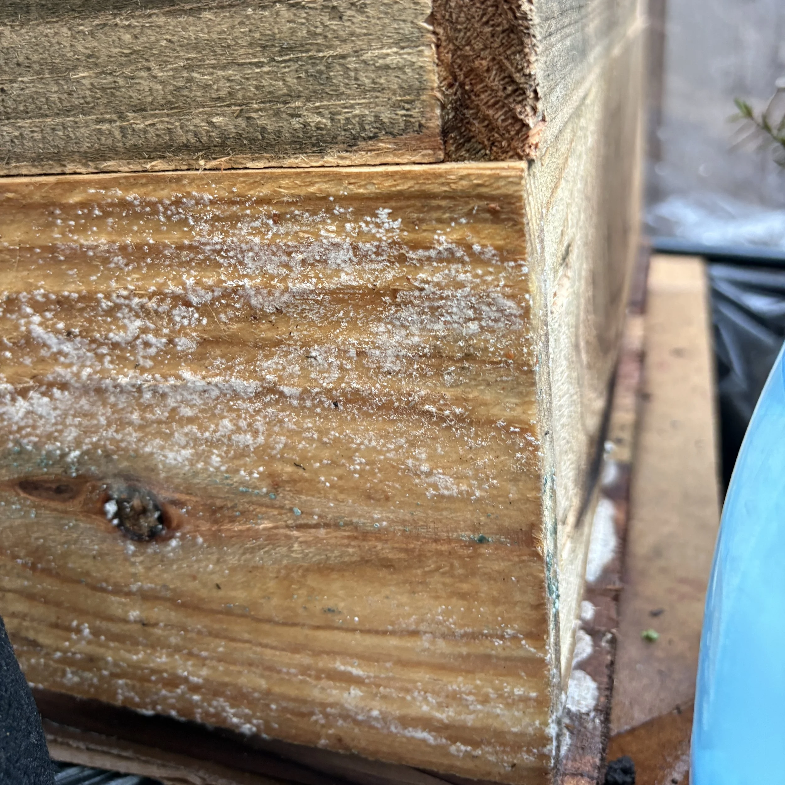 Signs of mold on box due to too much moisture (see below)