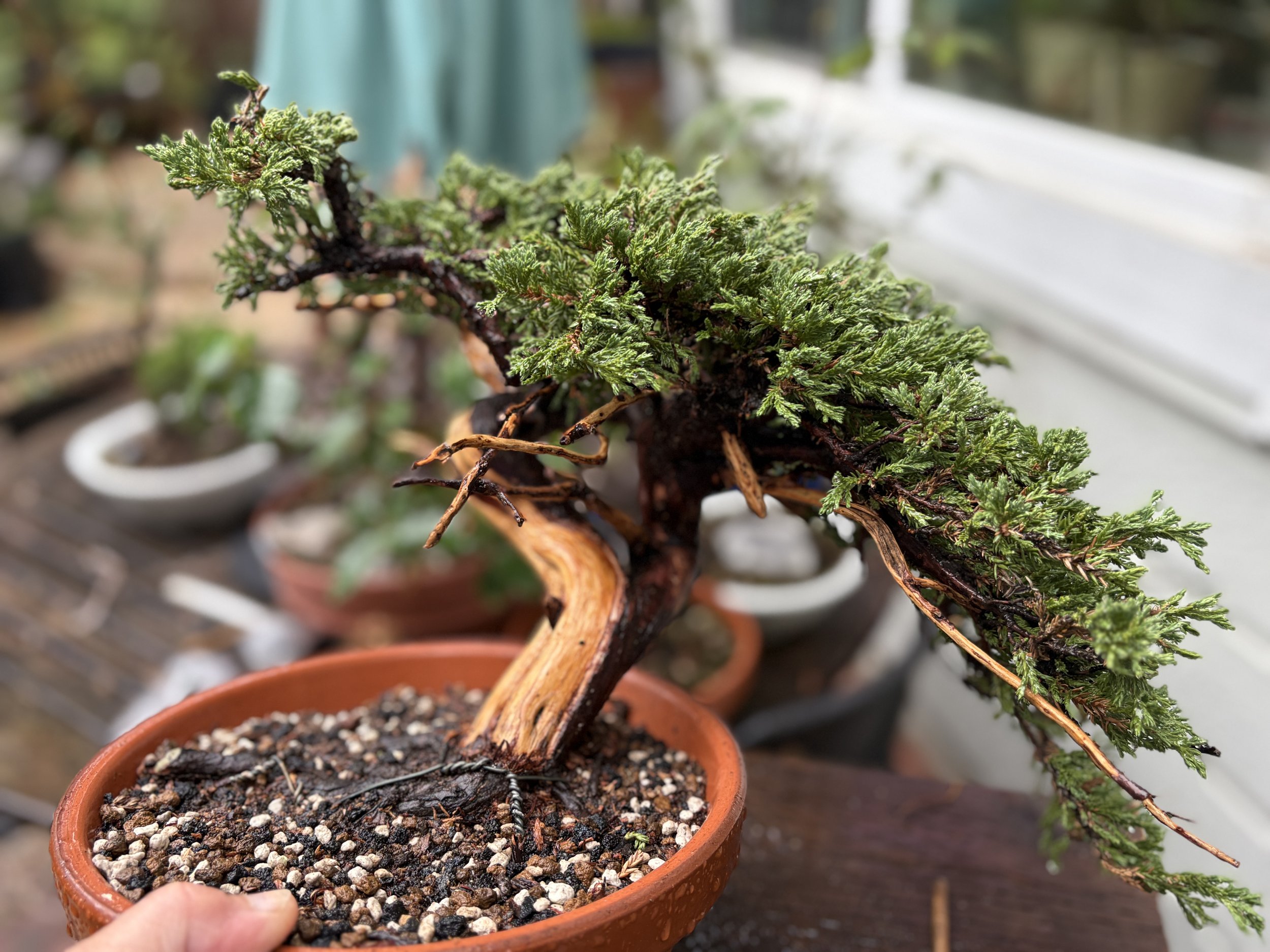 Repot new Shohin in Feb/Mar. #7 training pot. Repot w Adam.