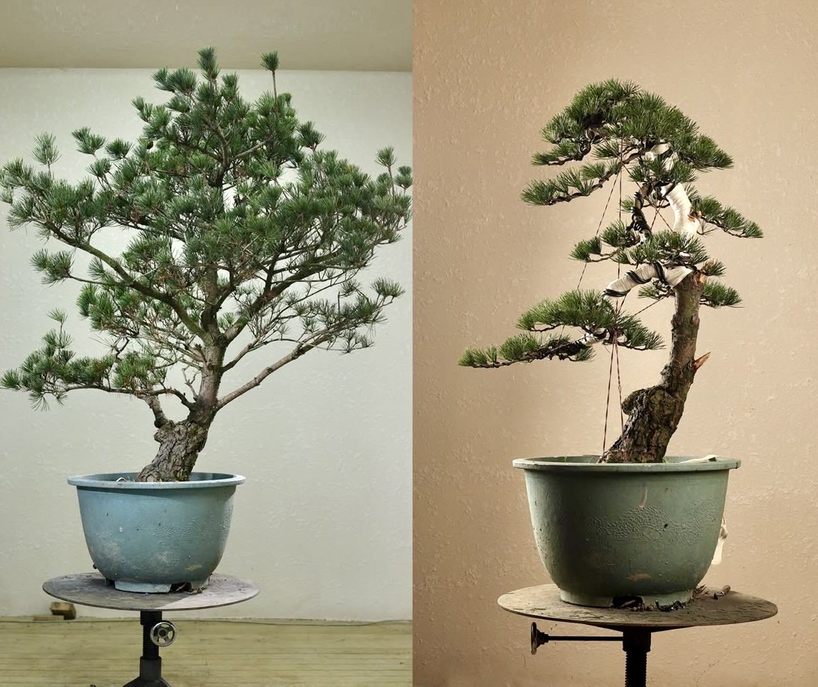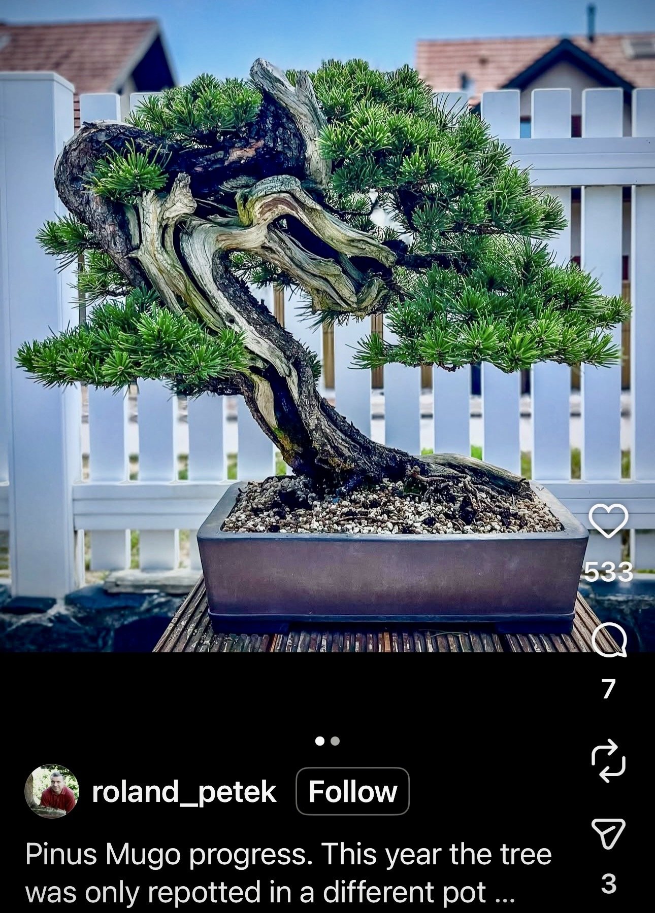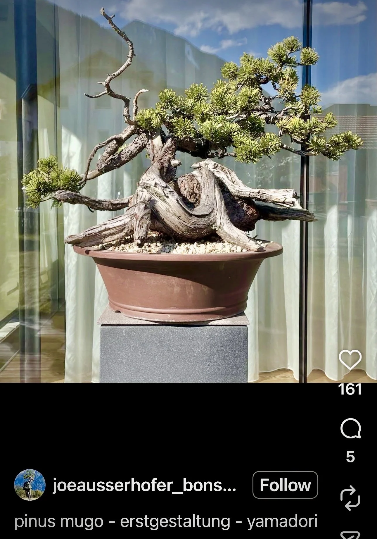 I dug up a thriving multi-trunk Mugo, with o lovely base. Too many options to use some and Jin other branches. Seeking inspiration to merge trunks to look more dense and unified.