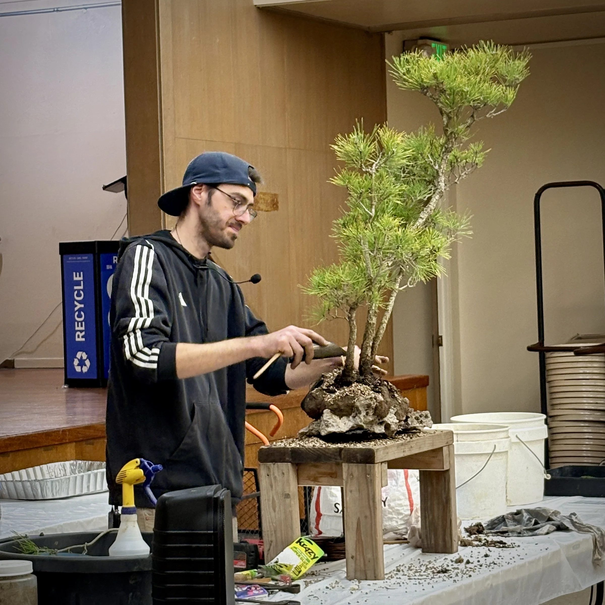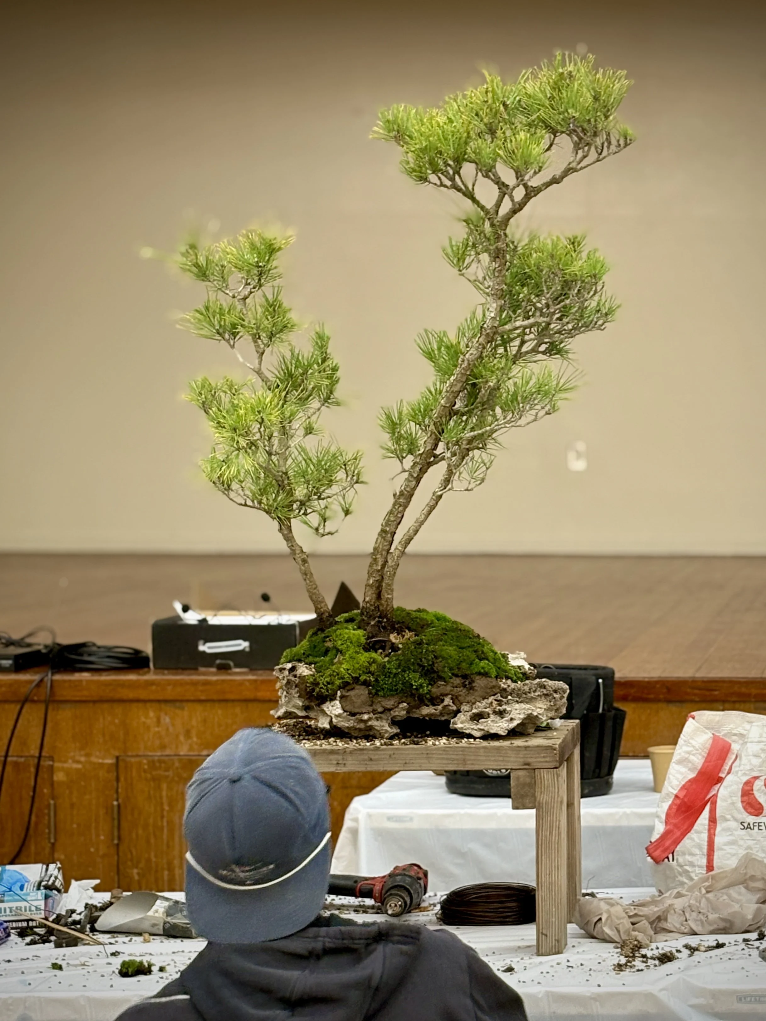 Finally covered with normal green moss. Avoids fluffy moss. Pins some sheets down with “U” wires against the slope or sides.
