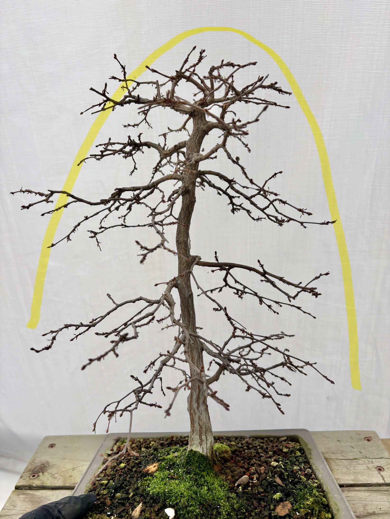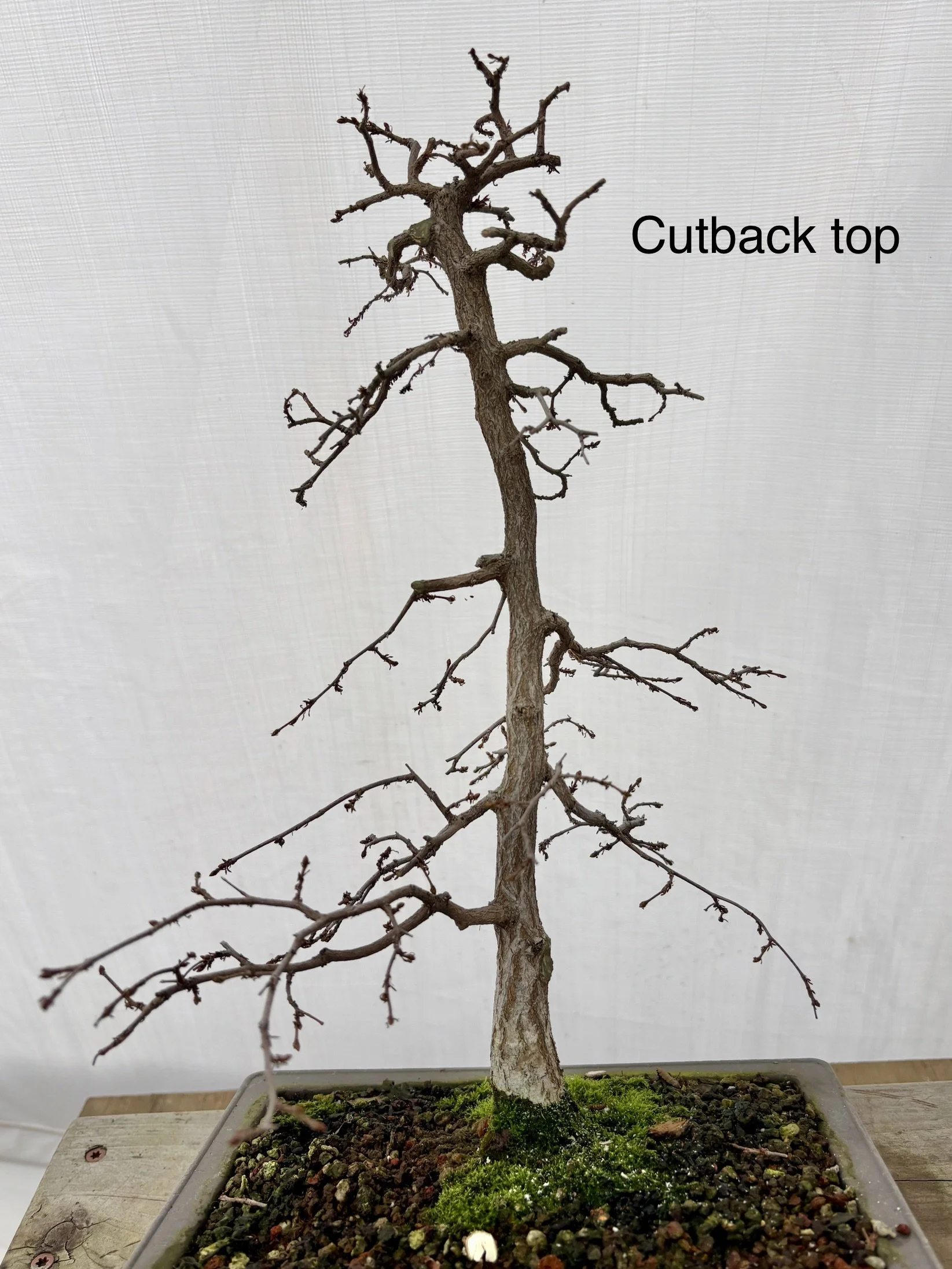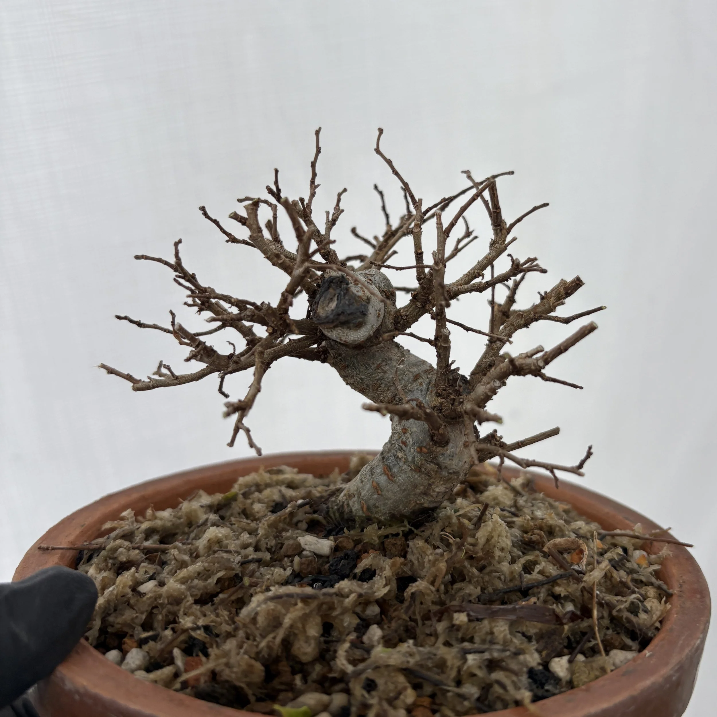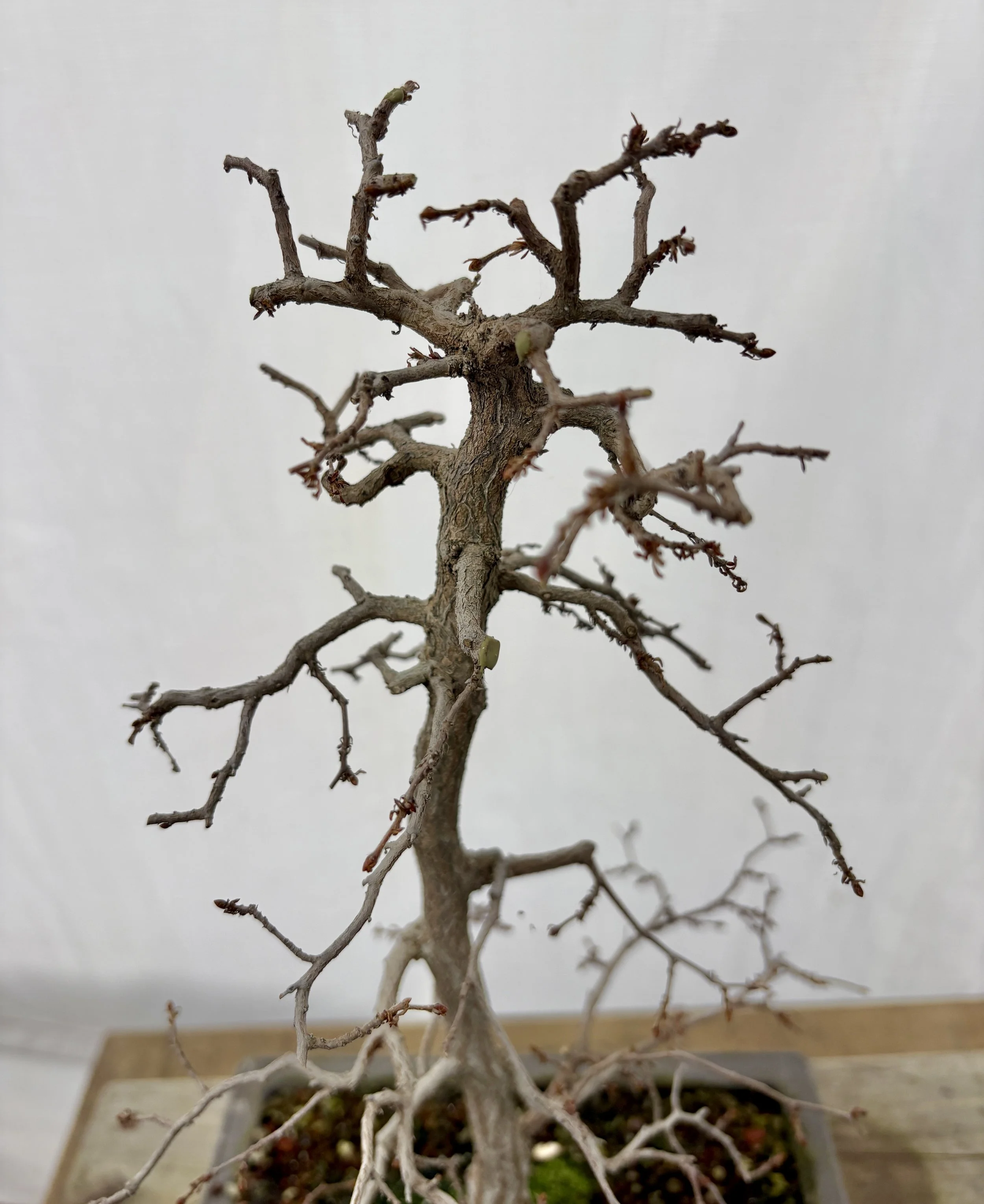 Sinuous Boon Jieun style, but very flawed. Some trunk rot and a split exposed roots and Adam chose to cut it all back to the roots.