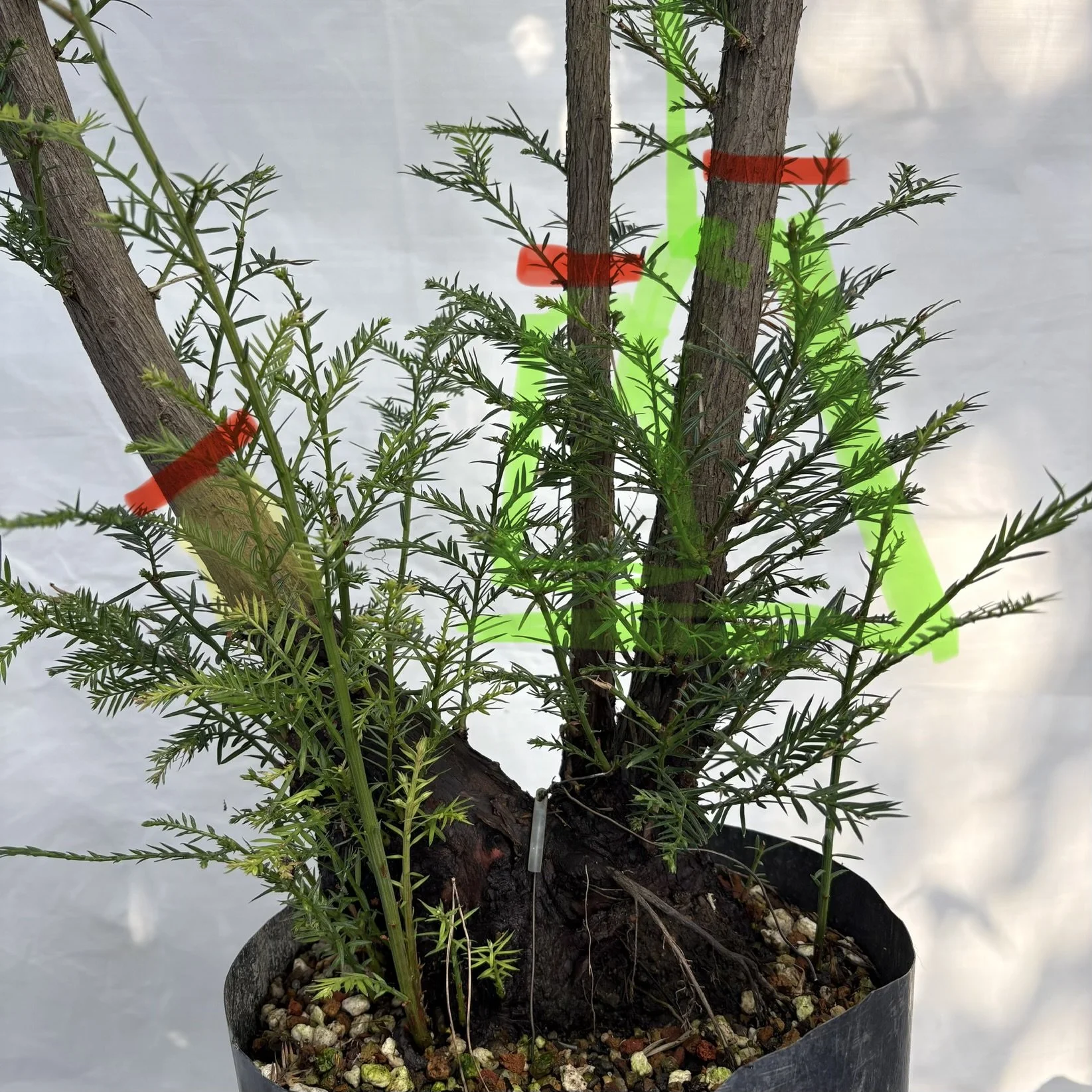 The angled trunk on the left is usable, but not as three long trunks. Adam prefers shorter trees, but it’s up to me. If I like the mother daughter straight trunks, then they will be upright, and the left angled trunk can be shortened and Shari or hollowed.
