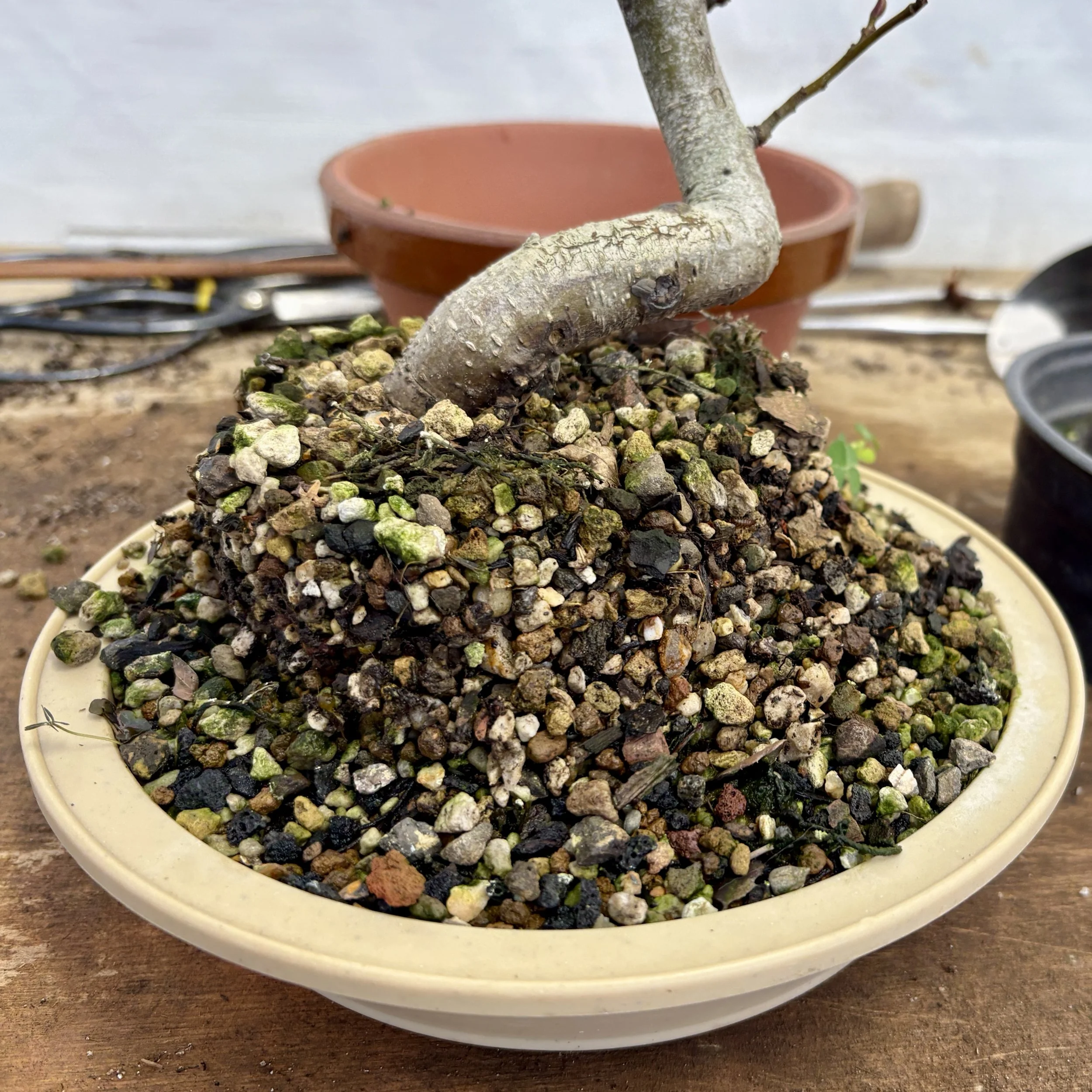 Only use dry soil, bone dry. If you mix dry Akadama with damp lava or pumice, the Akadama will soak up the moisture and breakdown during chop-sticking.