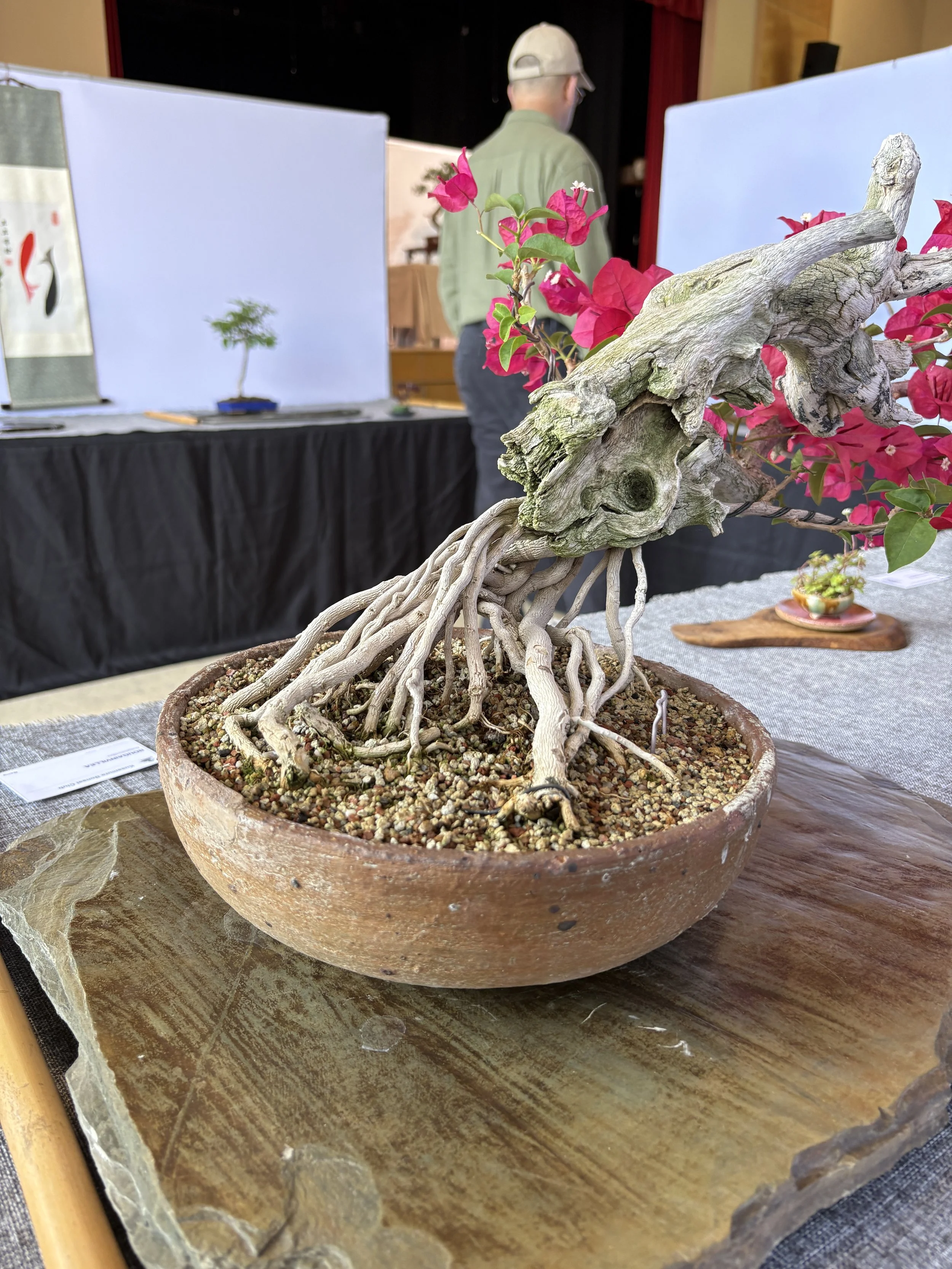 Shown below the main trunk put into soils and with incremental removal of soil developed the exposed roots shown.