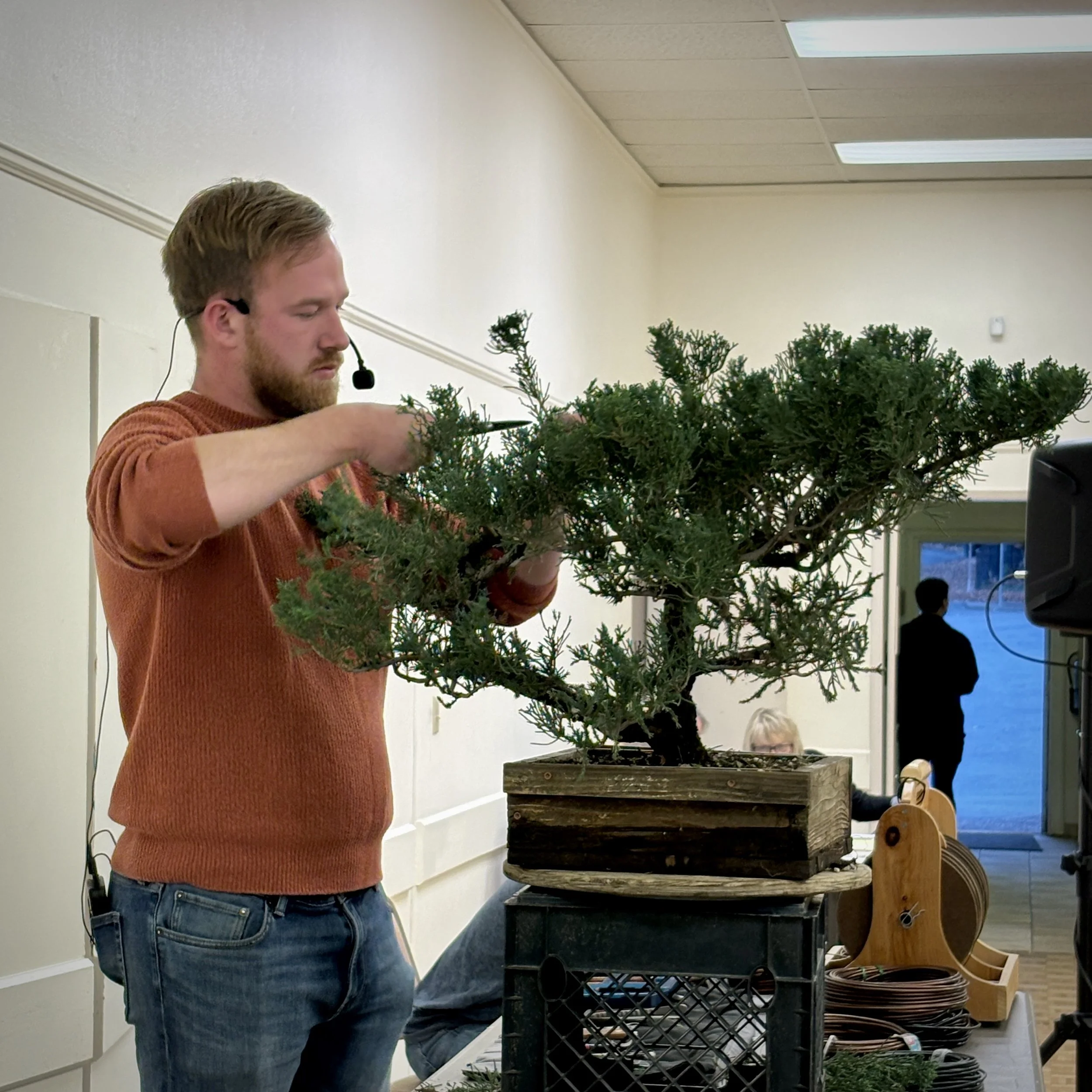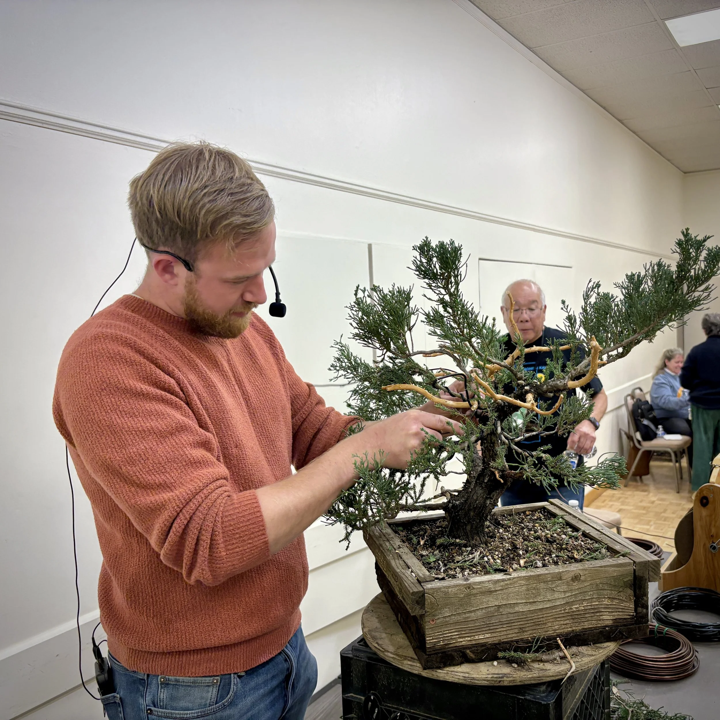 Started at age 14, inspired by some bonsai books/magazines. Practiced until he was able to work st a local nursery. Later attended Boon Intensives. At age 21, started a 6 yr apprentice at Koku-En (where Bjorn studied at). Continues to live and work in Japan as a bonsai professional.