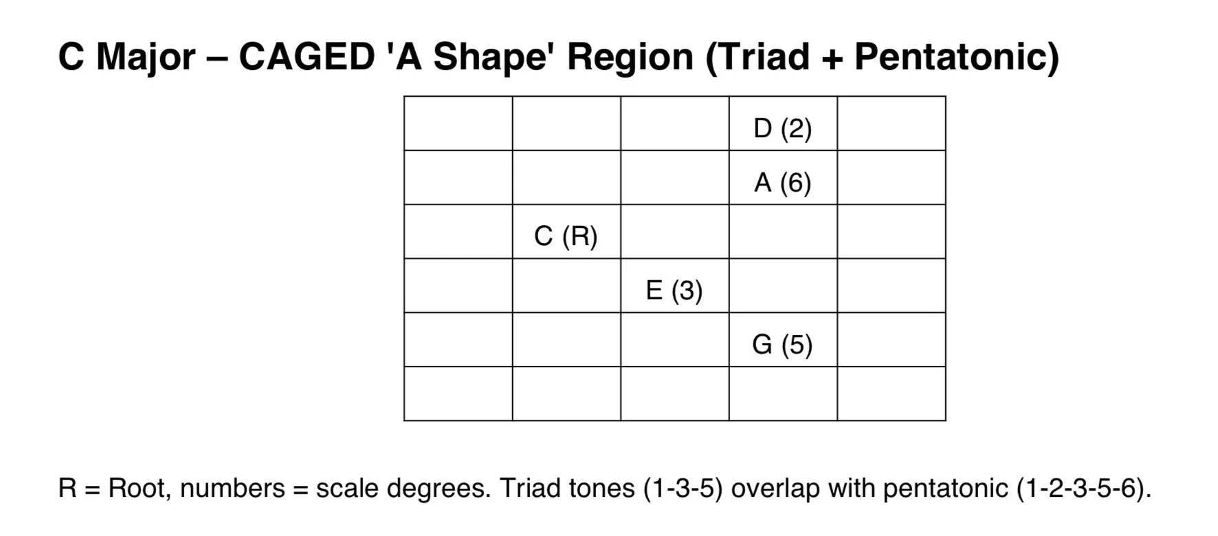 This guide shows how triads from the major scale overlap with pentatonic shapes on the guitar