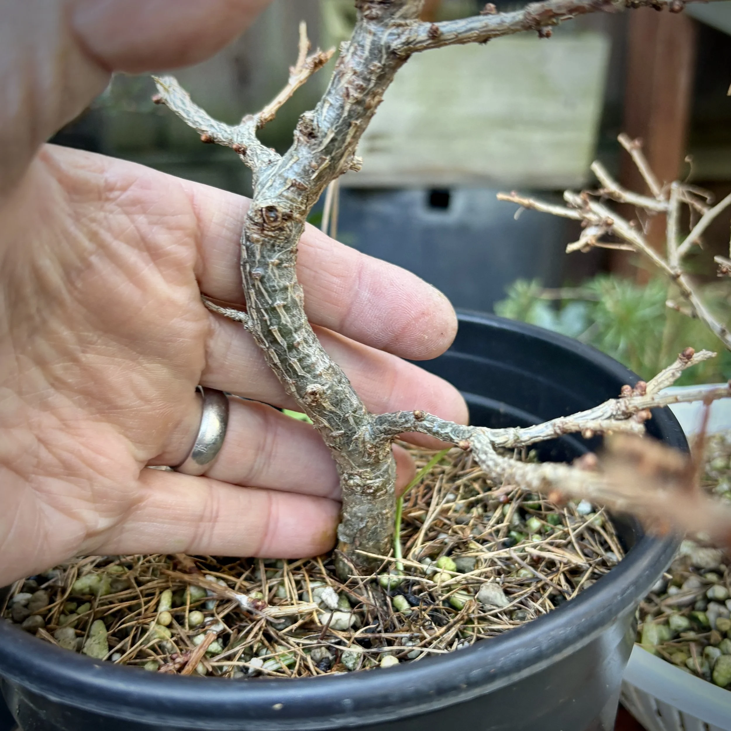 Healthy, clipped apex for lower branch creation; allowed lower beaches to grow long, originally wired trunk movement.