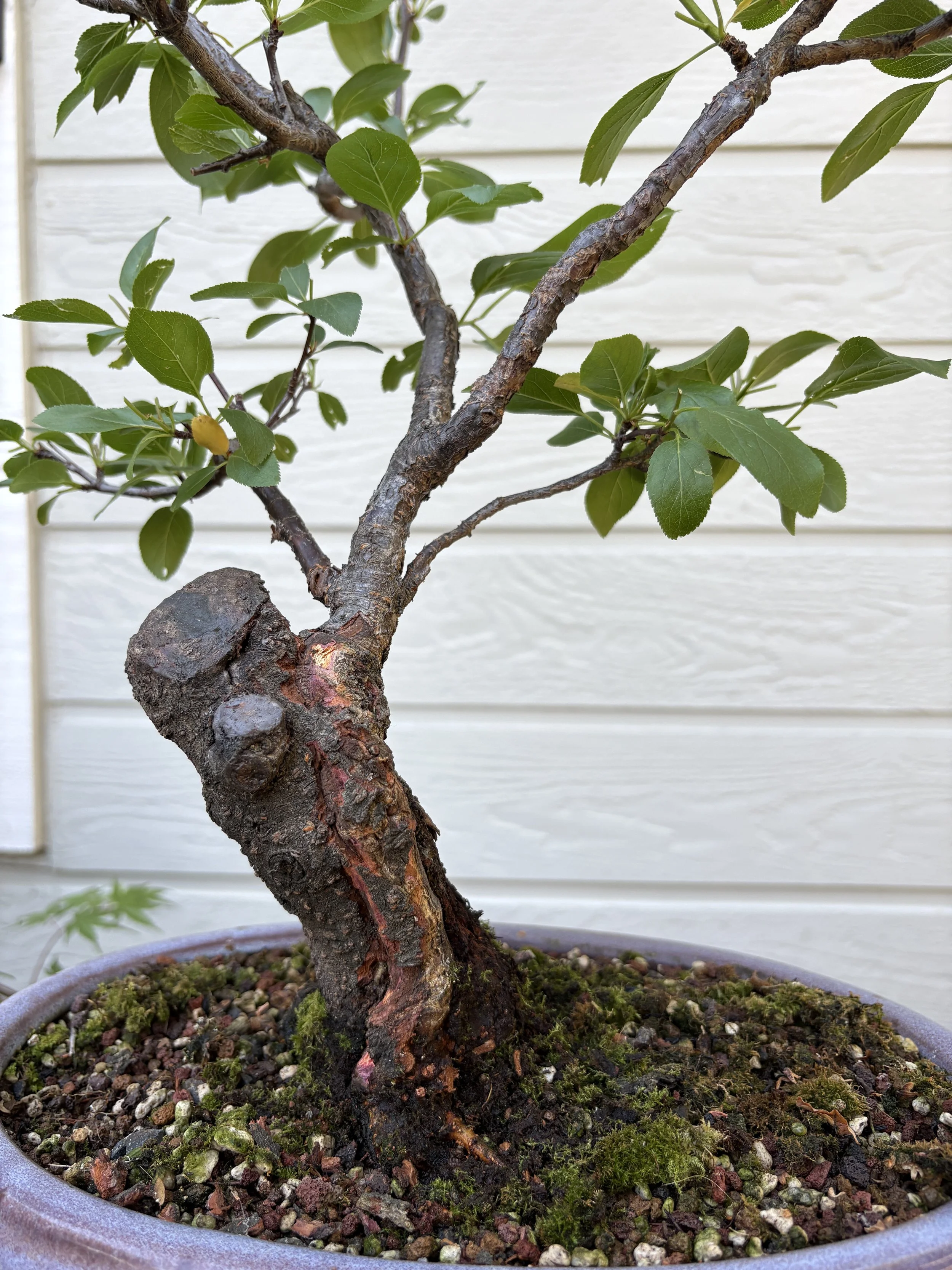 After the tree finishes blooming (Spring), the branches can be cut back. This is also the time to repot the tree if needed. Flowering Plum likes a lot of water so be sure to use a soil mix that holds a lot of water. Here at Aichien, we use 70-80 percent Akadama in the soil mix for Plums.