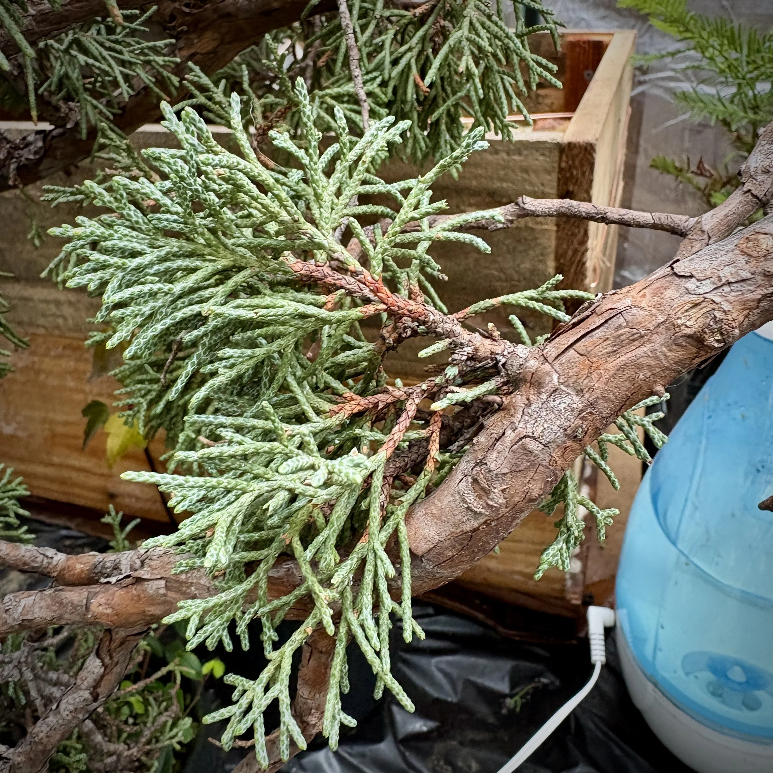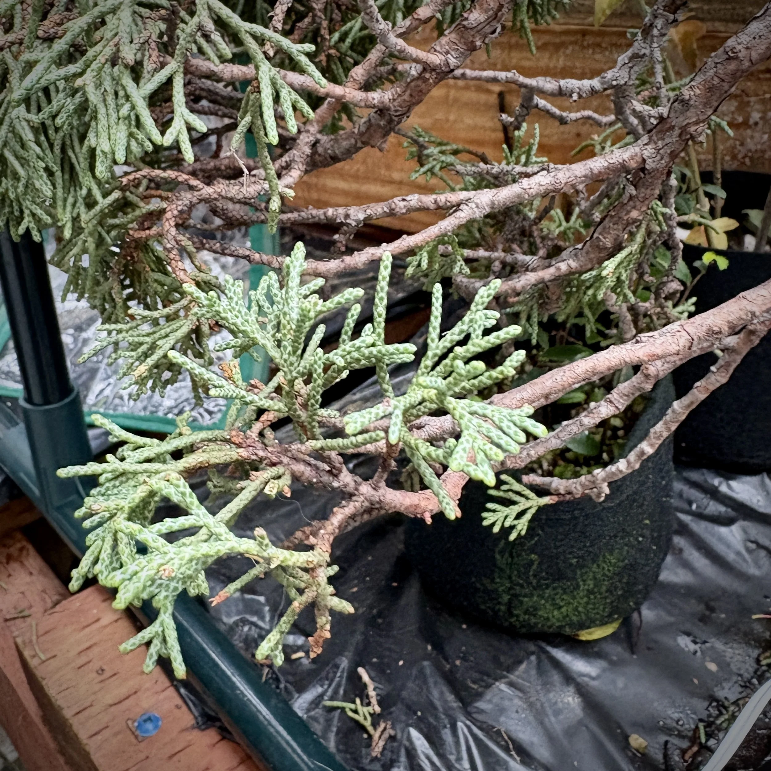 Two months in, looking promising, but less soft foliage than the other collected juniper at the same time.