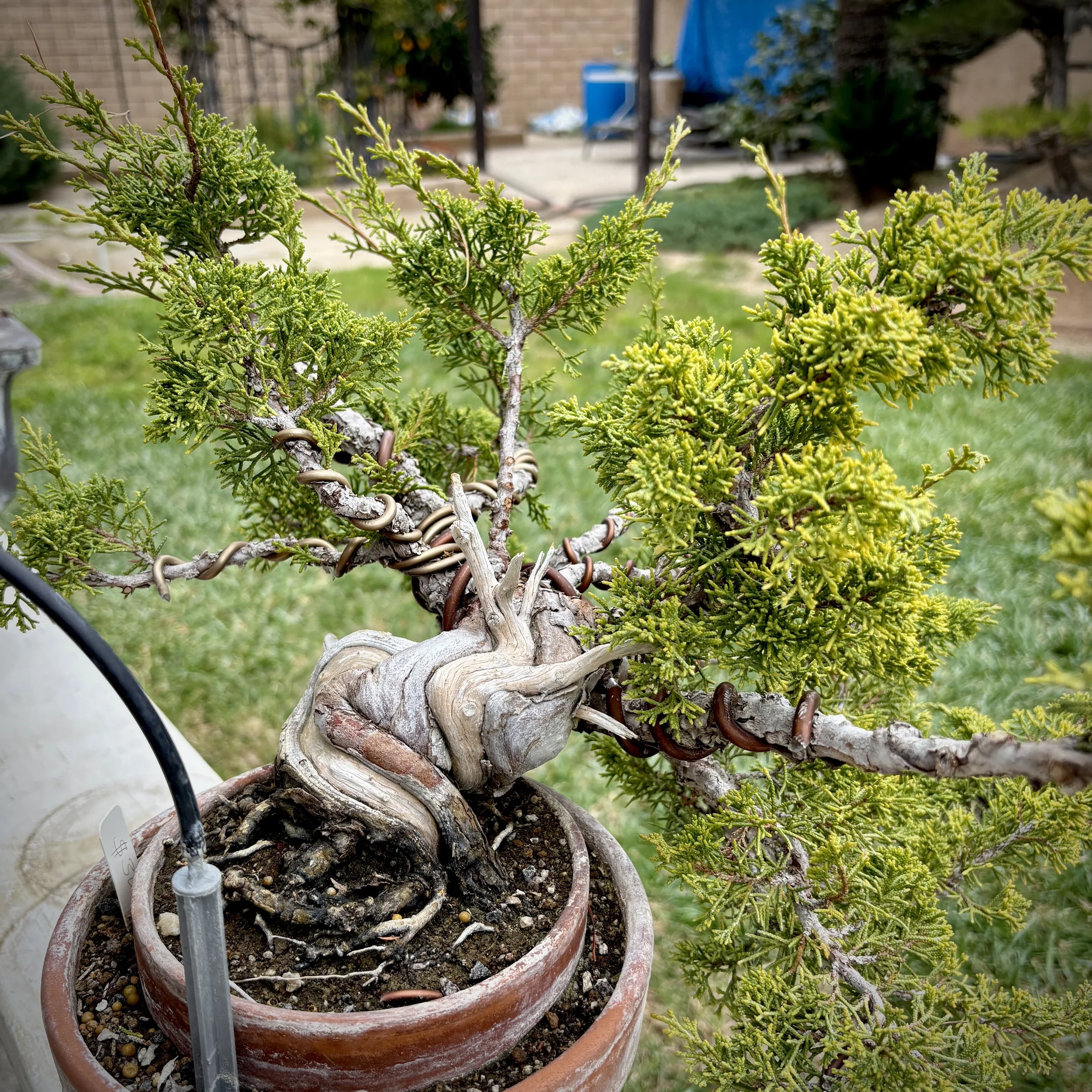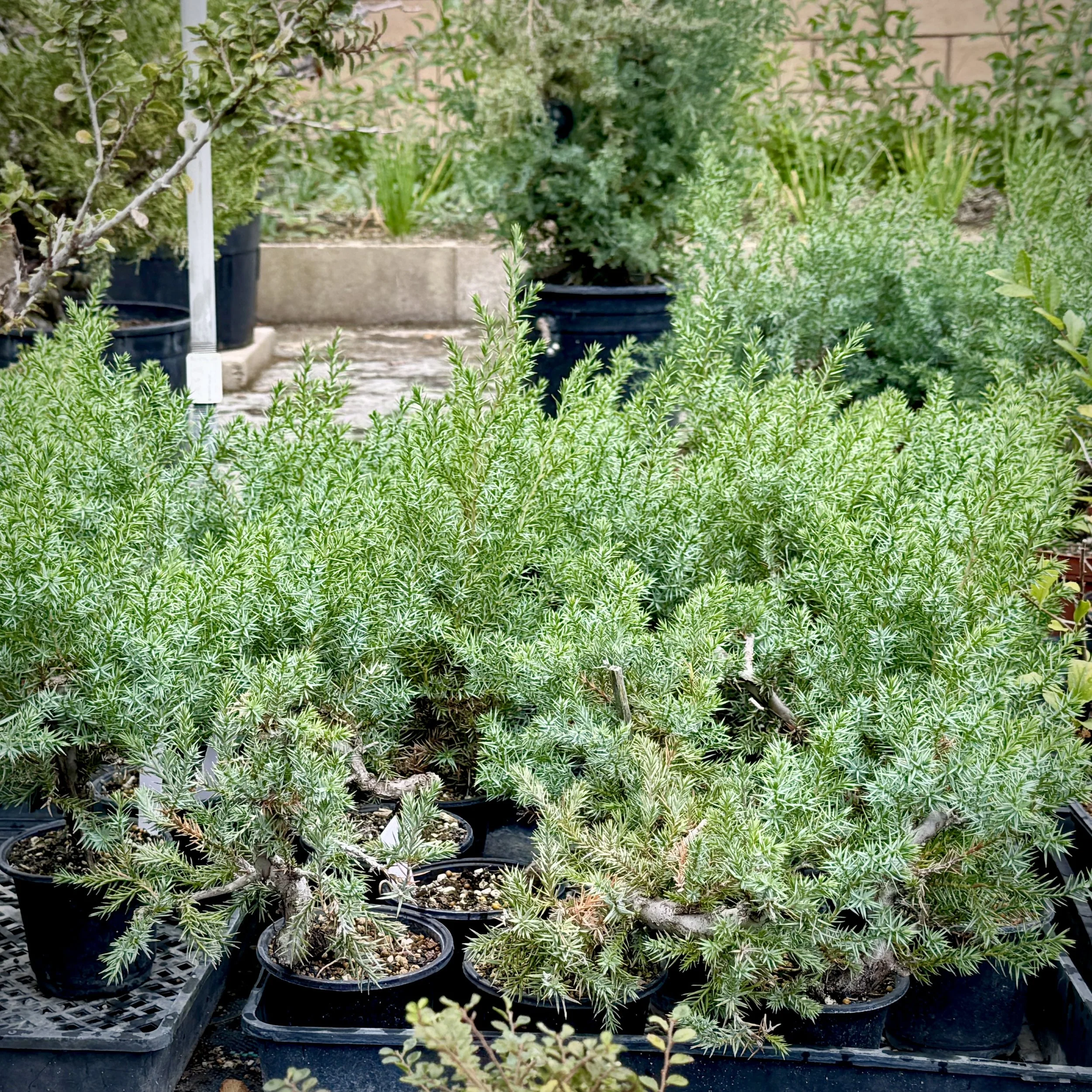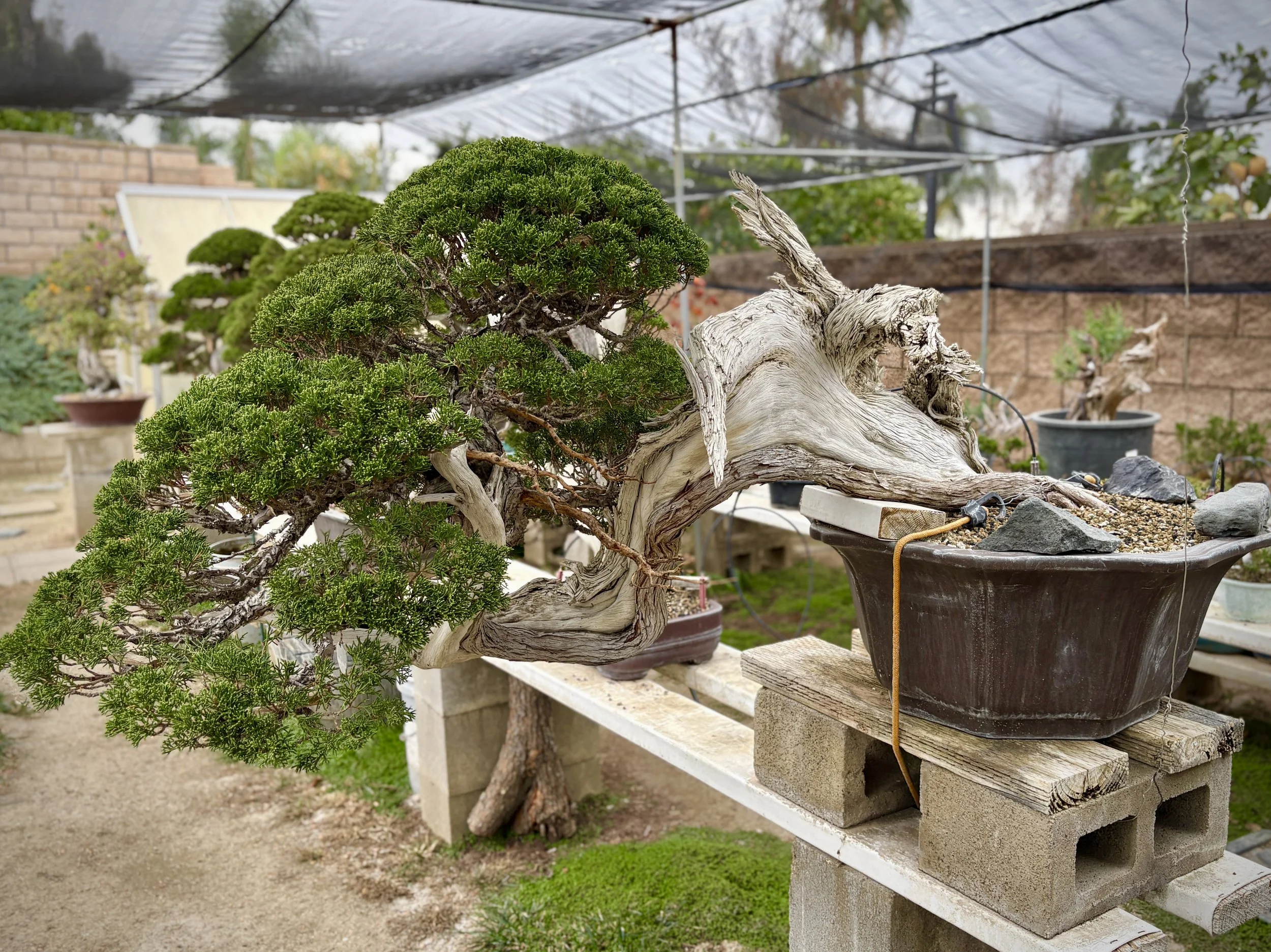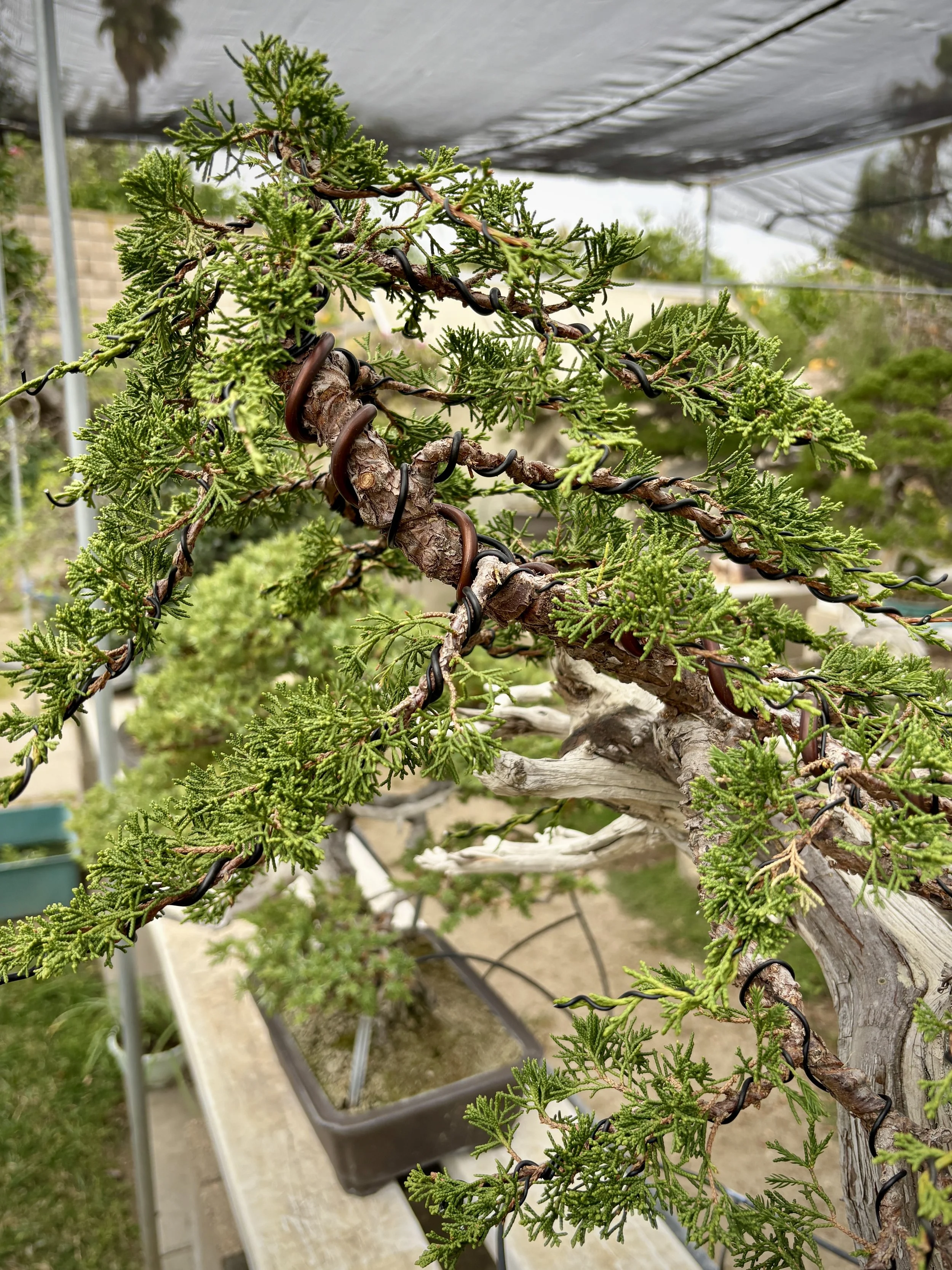 For collected California Junipers, his aftercare is unique or something to glean. Since this tree grows lower and often only sees rain in the winter, he does not water the soil for the first 4-5 months. Instead, he covers the soil with plastic and waters the foliage only. Enough moisture will feed root development. I believe he also bags the tree for humidity control—but I should verify that with him.