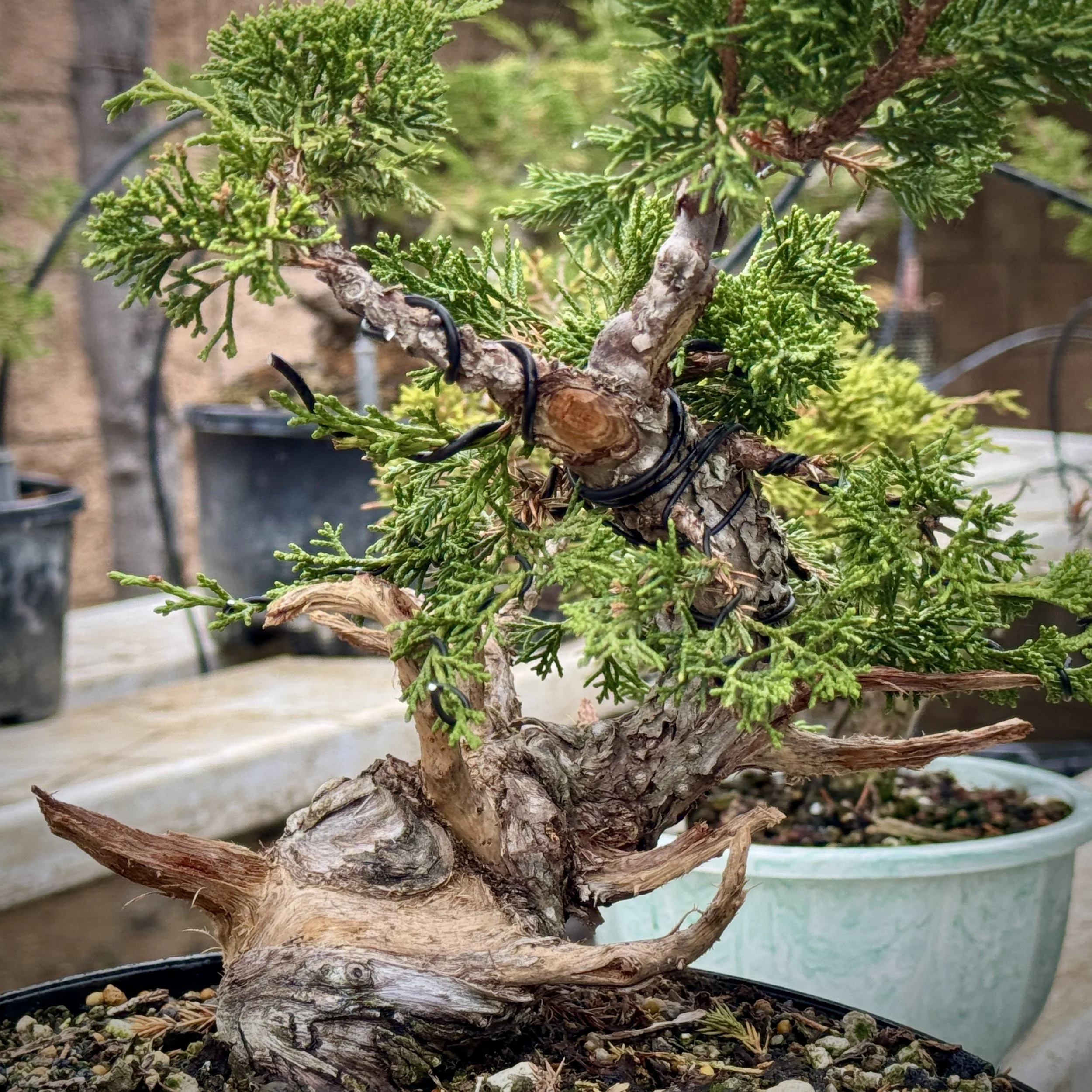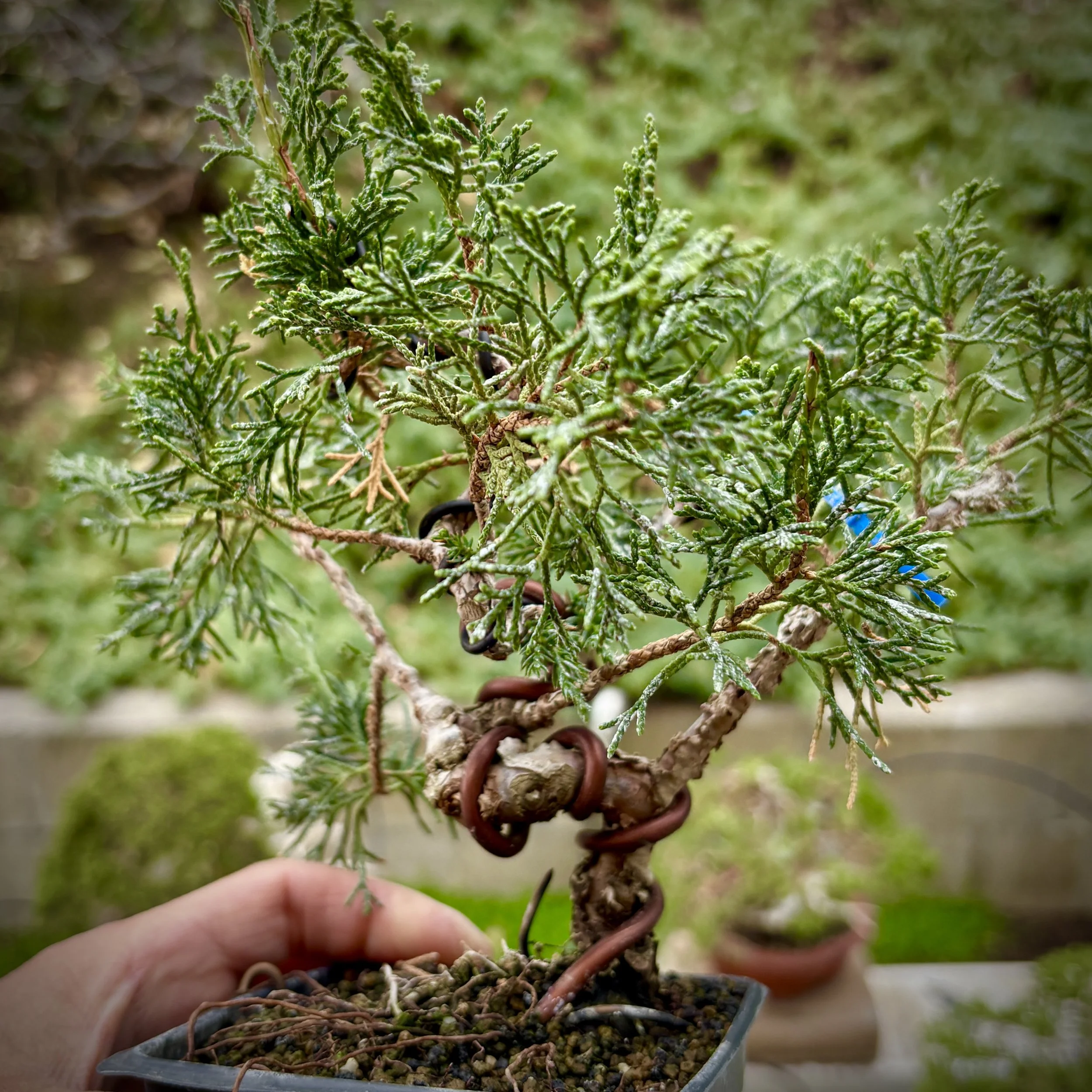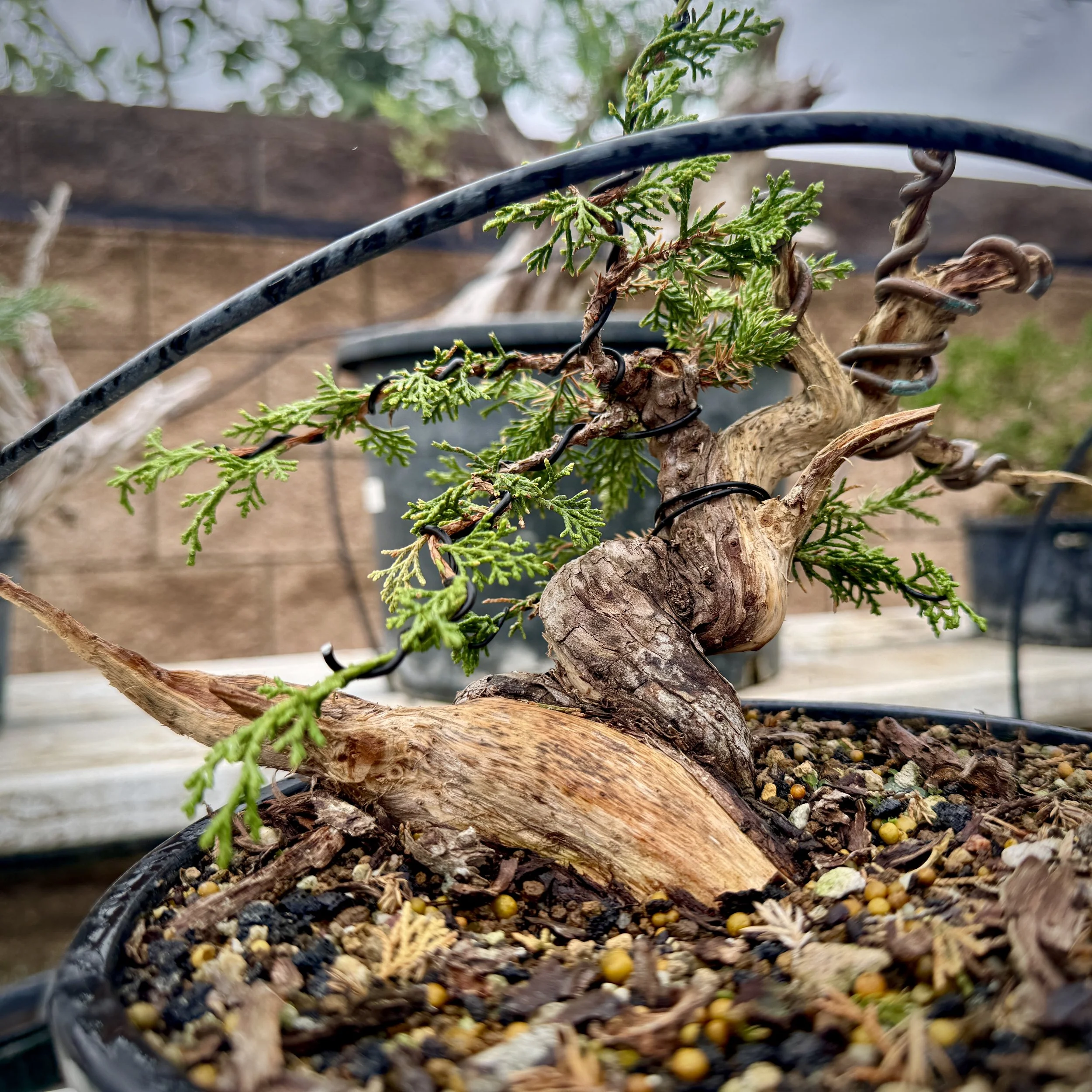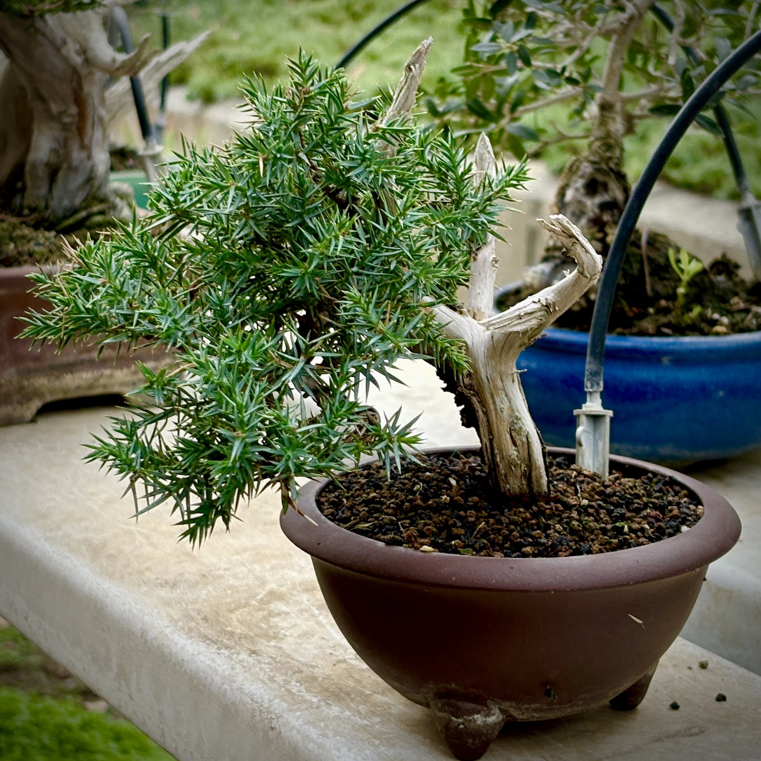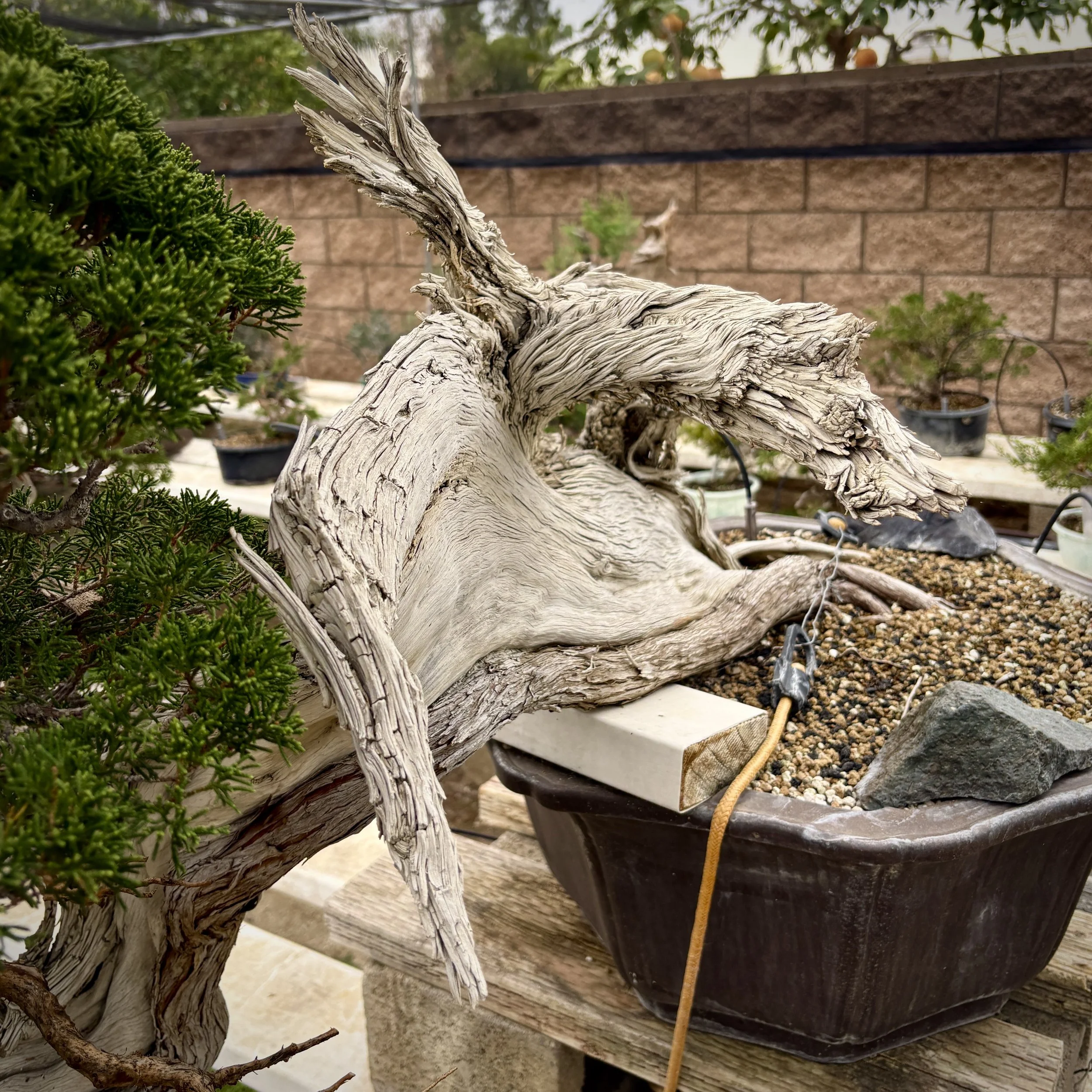 For collected California Junipers, his aftercare is unique or something to glean. Since this tree grows lower and often only sees rain in the winter, he does not water the soil for the first 4-5 months. Instead, he covers the soil with plastic and waters the foliage only. Enough moisture will feed root development. I believe he also bags the tree for humidity control—but I should verify that with him.