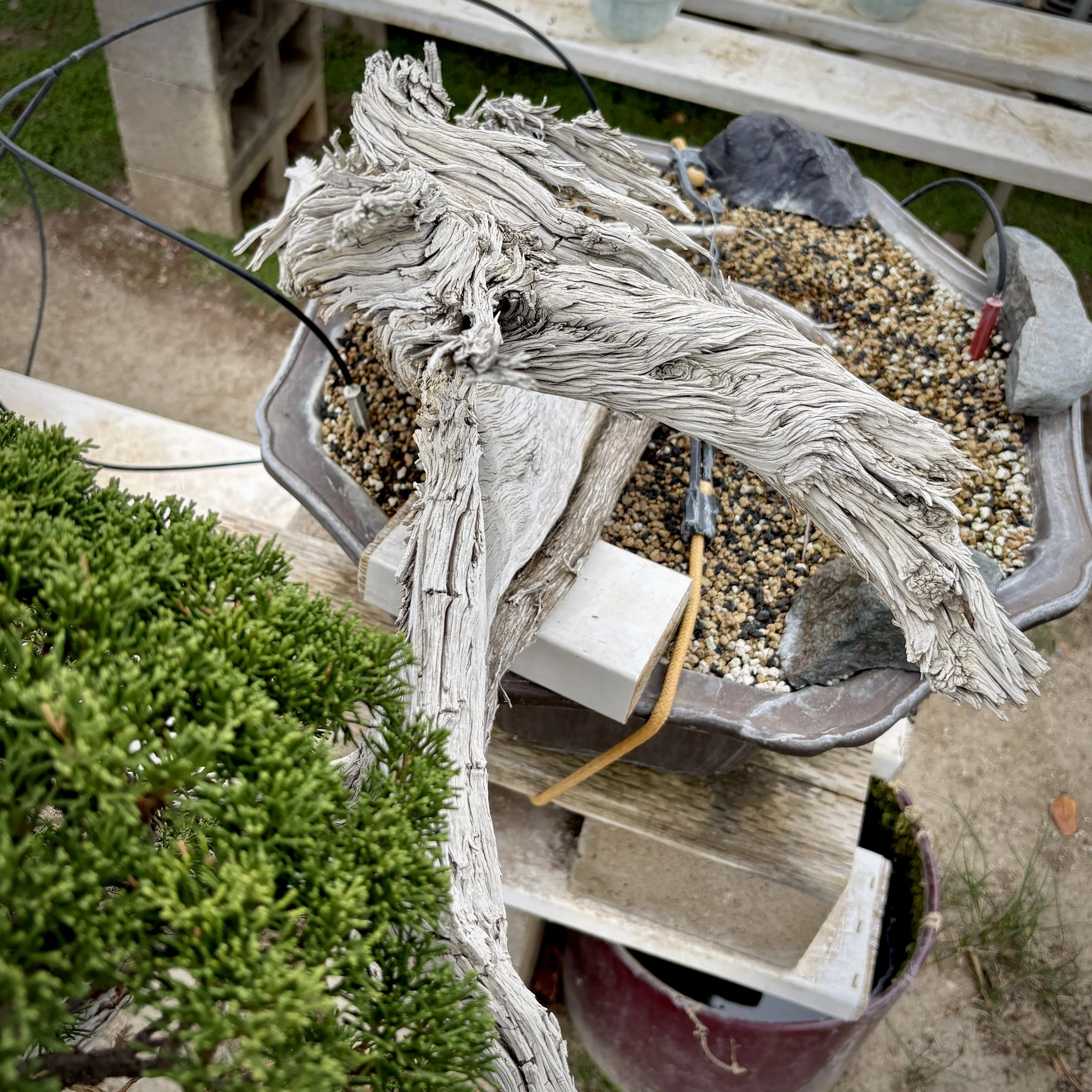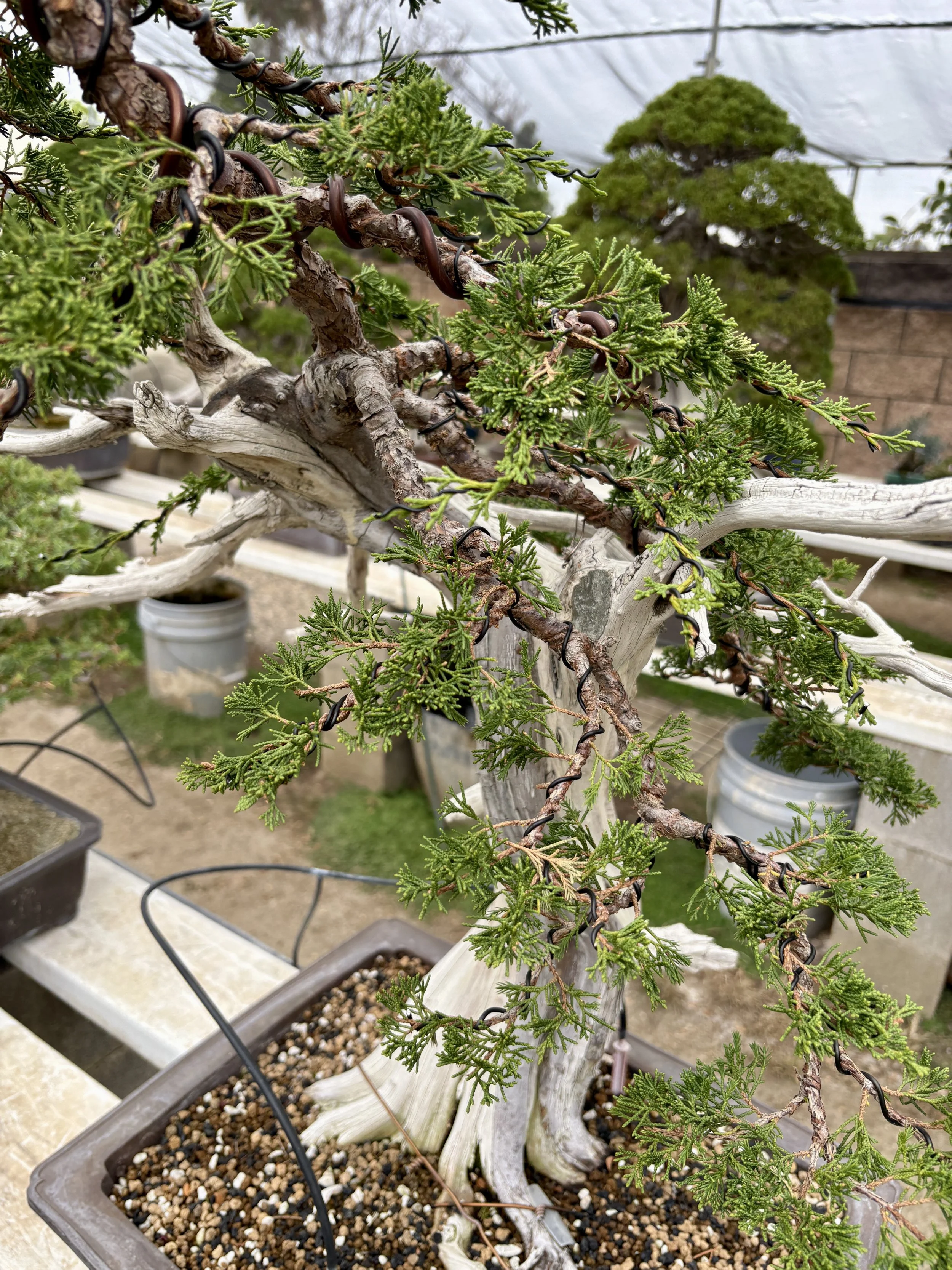 Developing air-layered and cutting junipers, adding wonderful movement. Itoigawa. Starts air-layering in Mar/Apr and harvest a year later. Cuttings on Feb.