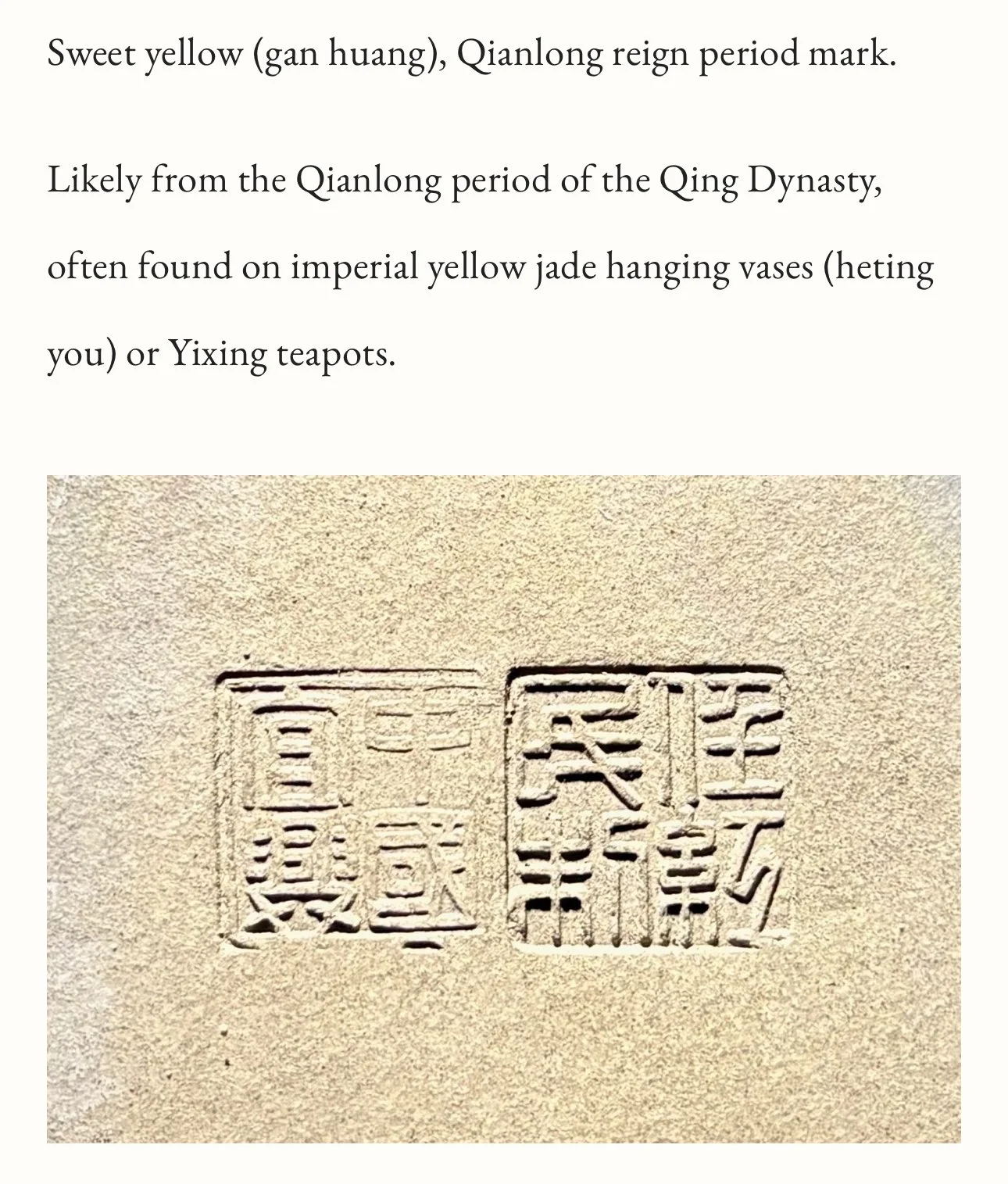 The seal is associated with Chinese Yixing pottery, known as Zisha or "purple sand".