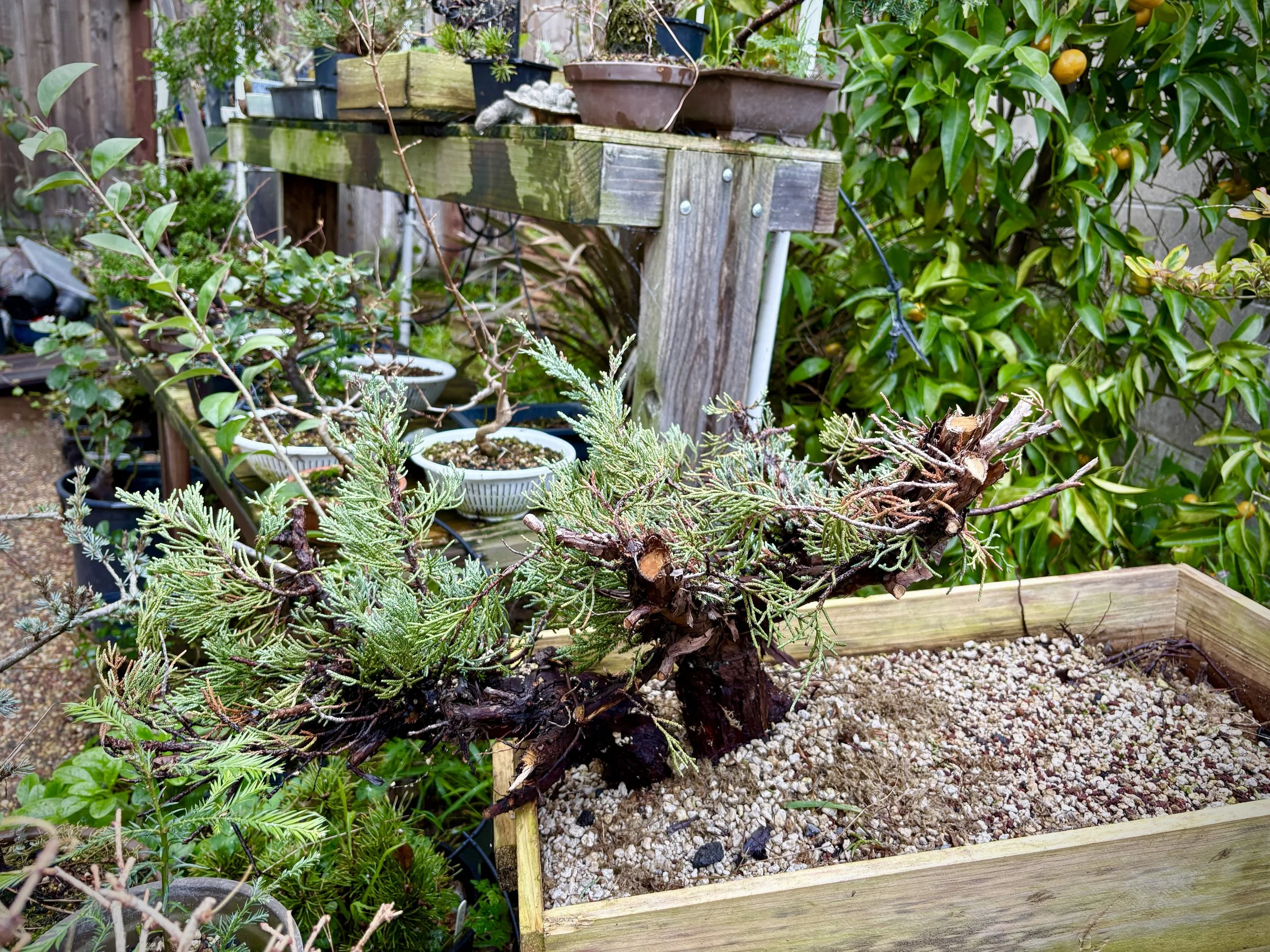 Sep 14, 2025 Gifted from Gio. Collected Labor Day. Pumice mix. In partial shade under humidity bag, to be misted daily and water soil every other day. After 2 months (Nov 14) remove from bag and continue to mist.