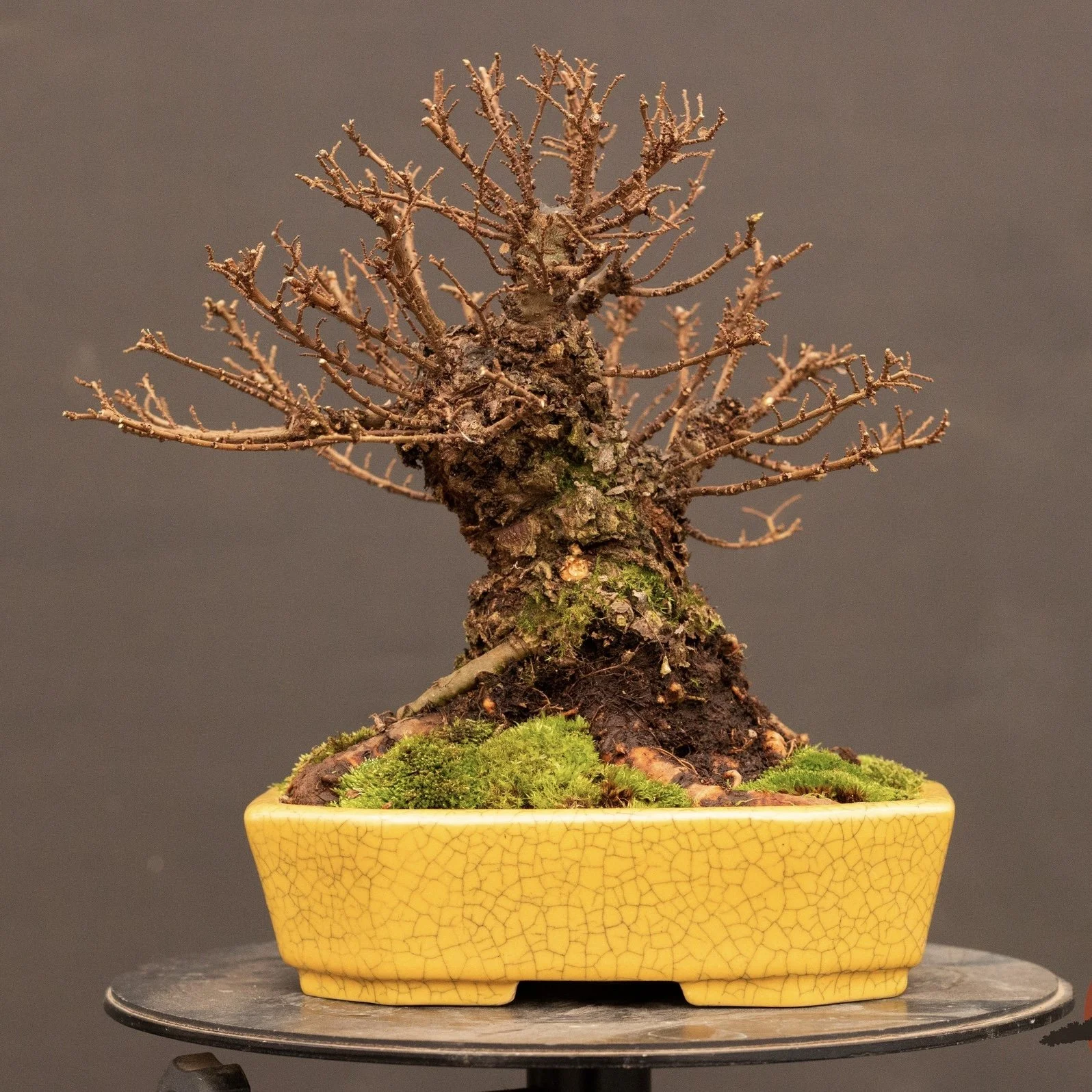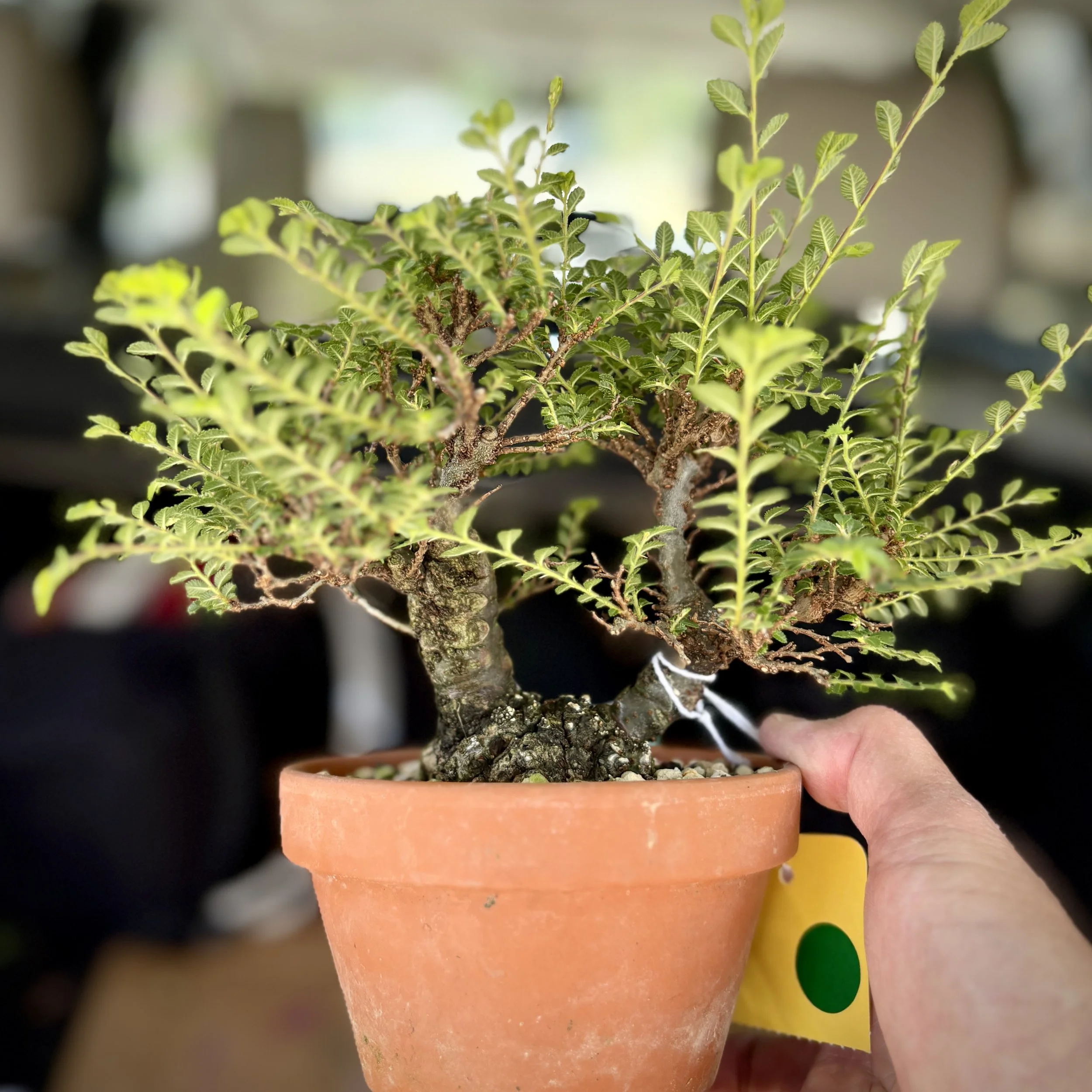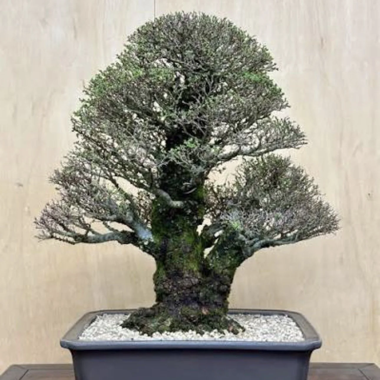 The Seiju Elm (Ulmus parvifolia 'Seiju') is a hardy, fast-growing, and beginner-friendly bonsai with corky bark and tiny, crinkled leaves. It thrives in full sun, requires consistent moisture to avoid drying out, and prefers regular pruning to maintain its compact, dwarf form. Fertilize regularly during the growing season.